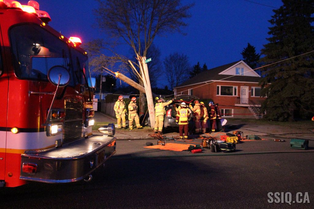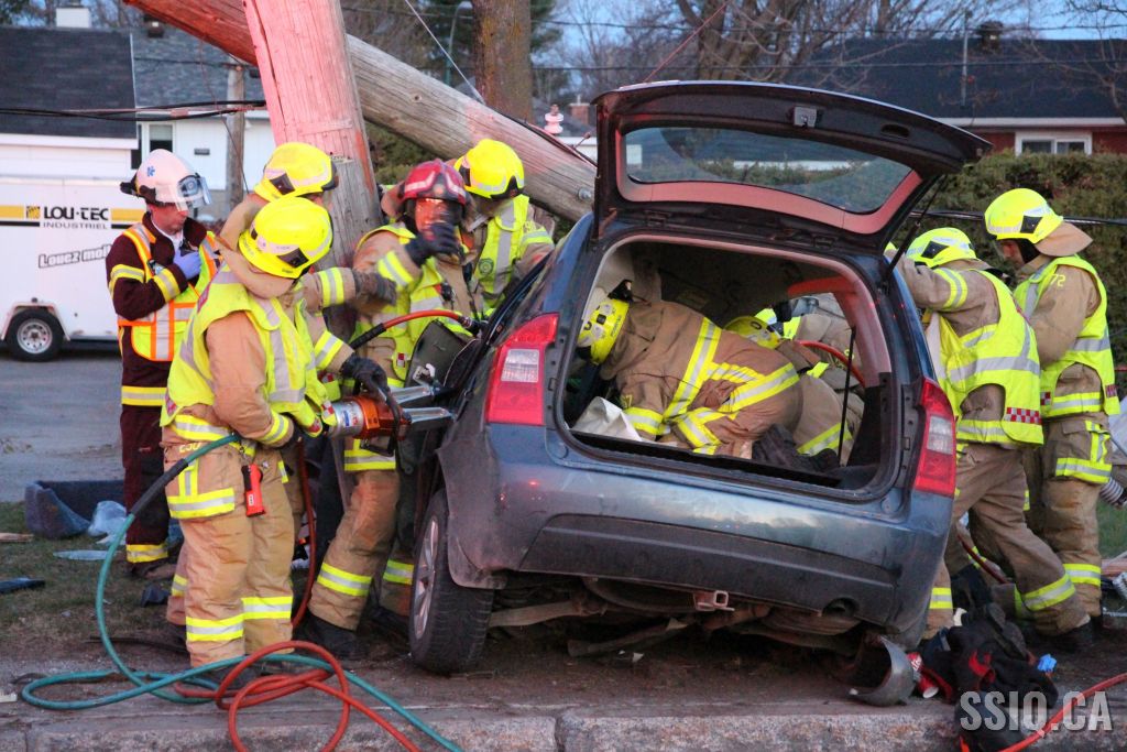 En début de soirée, le 209 est appelé pour un accident de véhicule, la voiture serait entrée en collision avec un poteau électrique. Les plaignants font mention à la centrale qu'une personne est prisonnière de son véhicule et que des fils électriques sont sur le toit de celui-ci. Le véhicule 709 est alors mis en COOP et l'intervention est balancée en Code Mâchoire.