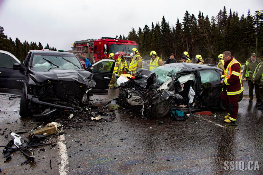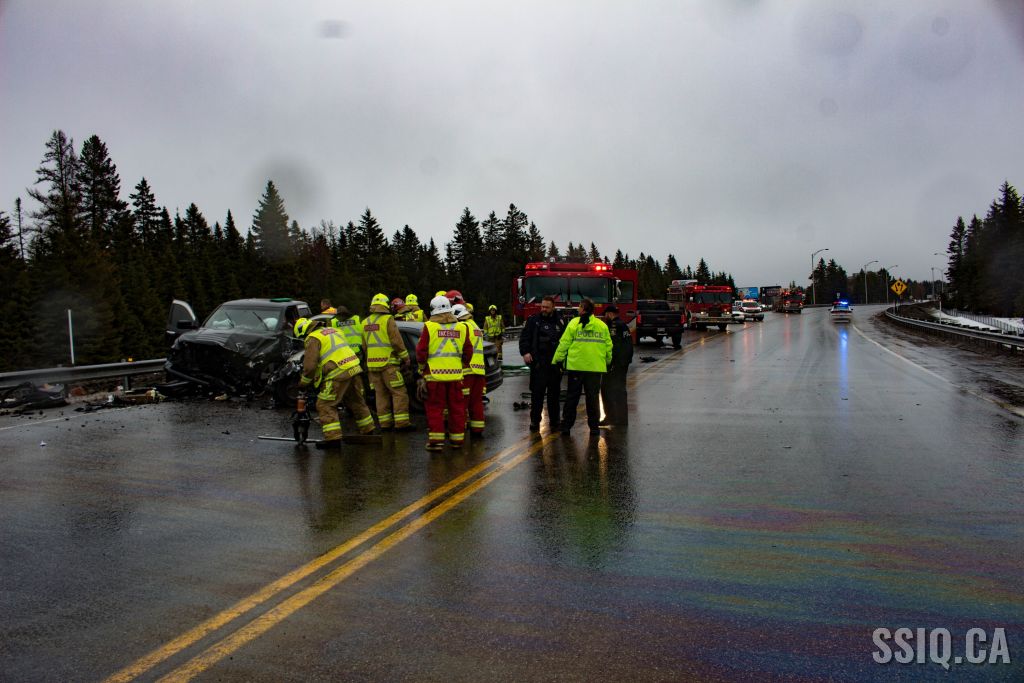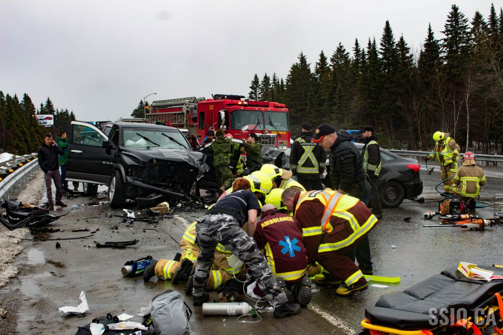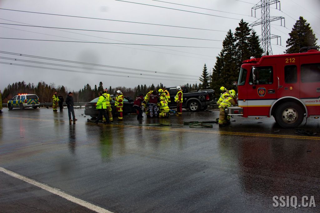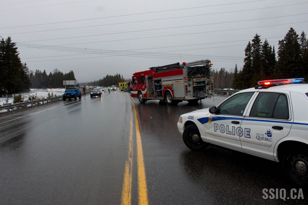 En début d'après-midi, l'équipe des casernes 12 et 6 ont été demandées sur la route de la Bravoure (autoroute 573) en direction nord, après l'avenue Industrielle. Un violent face-à-face venait de faire deux blessés dont un était coincé dans son véhicule. Les outils de désincarcération ont été nécessaires pour évacuer la victime coincée, dont le décès a malheureusement été constaté à son arrivée à l'hôpital.