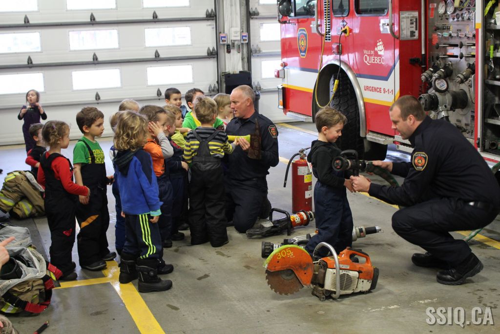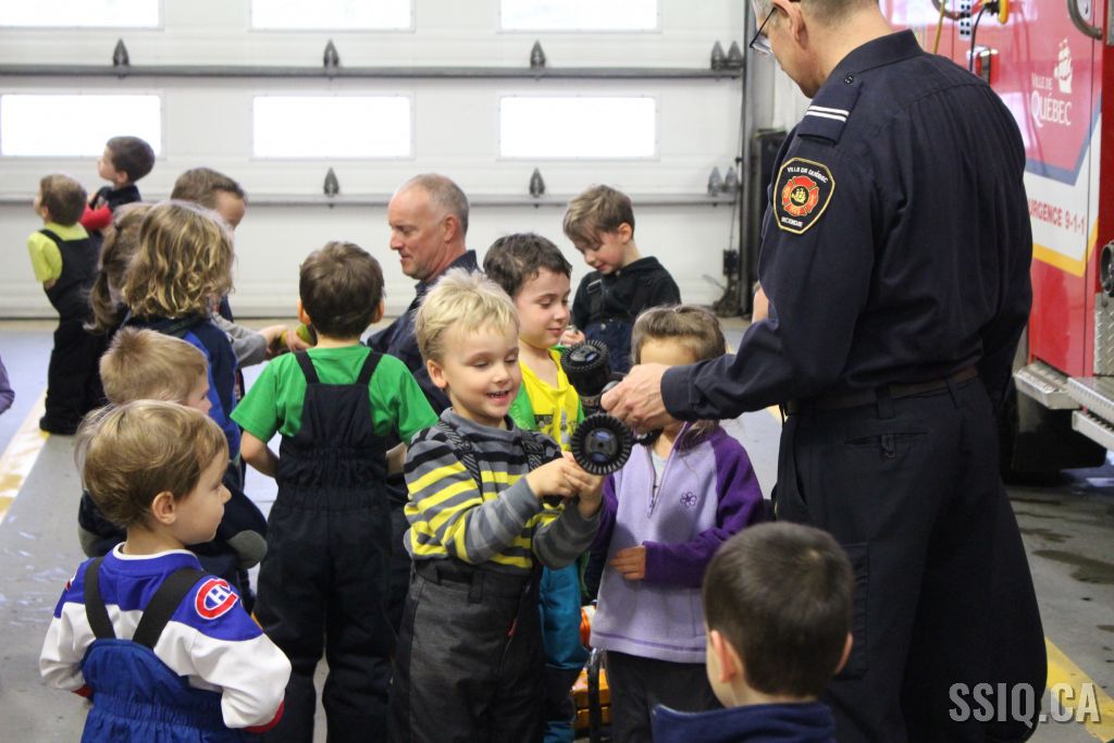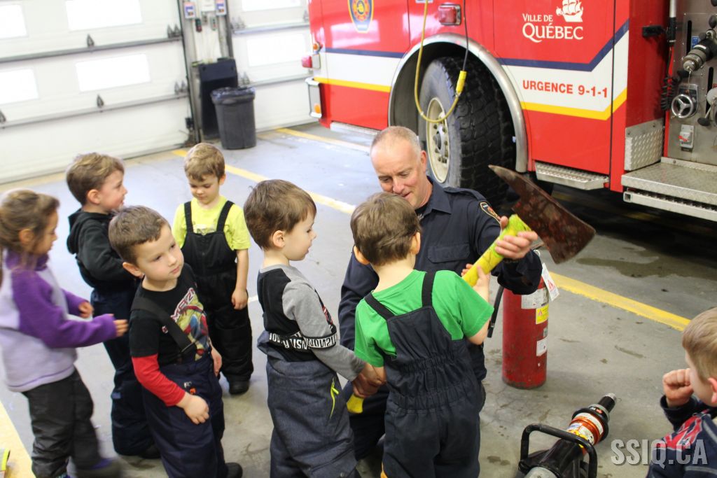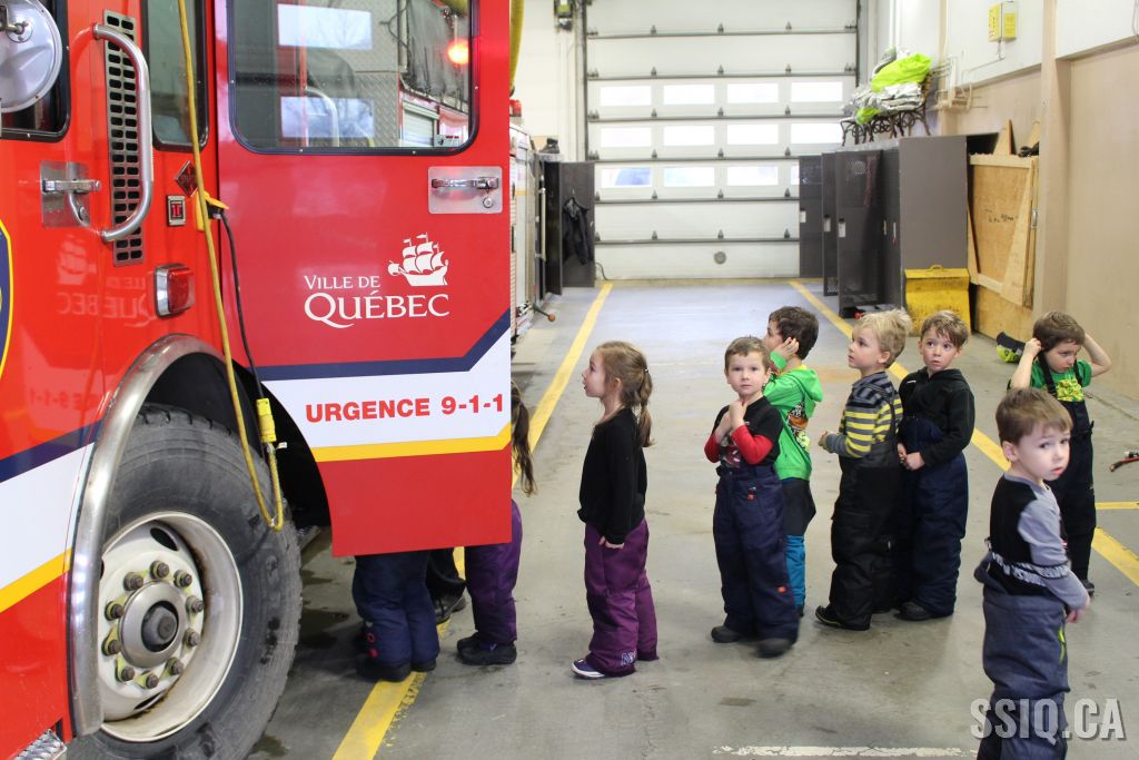 Une école du secteur Duberger a rendu visite à la caserne de pompiers #5. Lors de cette activité, les enfants ont exploré l'ensemble de la caserne et ont pu manipuler de l'équipement en plus d'embarquer dans le camion de pompier. Une démonstration de l'habit de combat a même été faite. L'ensemble de la visite fut très appréciée par les intervenants et les enfants. Après la belle rencontre, un pompier a demandé au groupe quel métier ils voulaient faire plus tard et, sans aucun doute, ils ont tous répondu "pompier"! Des camions de pompier pour bricolage ont été remis ainsi qu'un cahier de prévention Croc-feu.