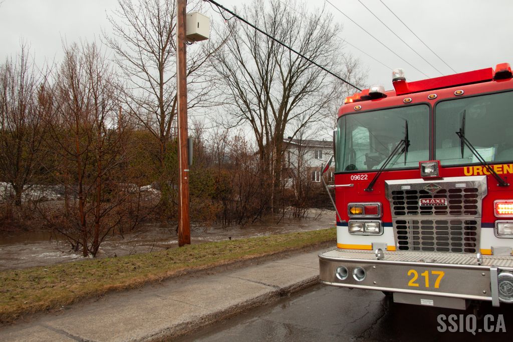 L'appel initial est entré par un passant. Les détails faisaient mention d'eau qui encerclait une maison sur le boulevard Louis-XIV, près de la rivière.