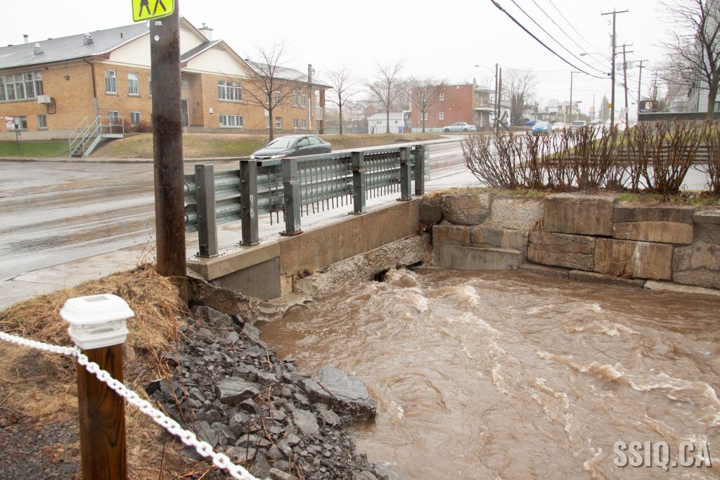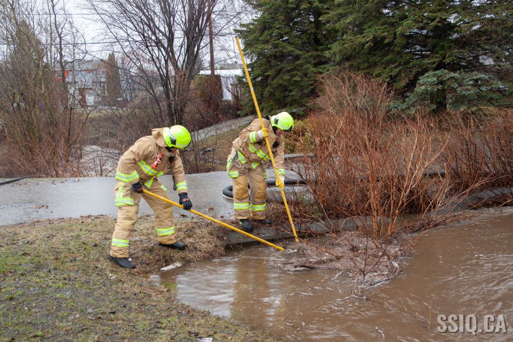 Arrivé sur les lieux, l'officier du 217 a confirmé la situation. Un ou plusieurs ponceaux semblaient bloqués par des débris. Les travaux publics de la ville ont été demandés sur place.