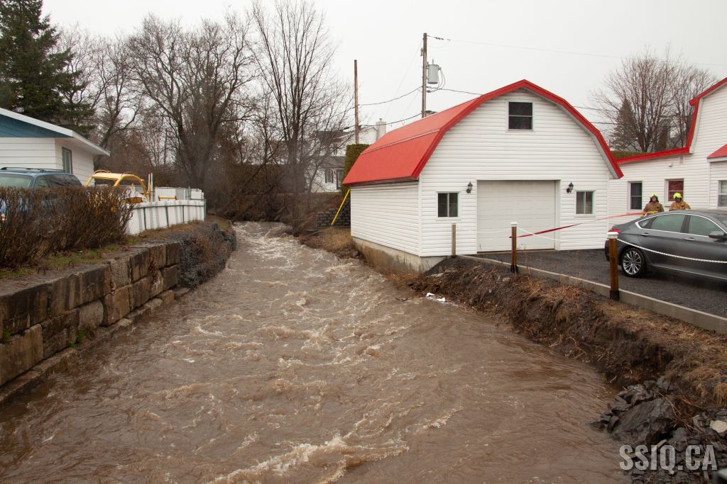 Des vérifications ont aussi été faites dans une seconde résidence de la rue Seigneuriale. La fondation du garage de cette résidence étant tout juste sur le bord de la rivière, un périmètre d'exclusion à été érigé.