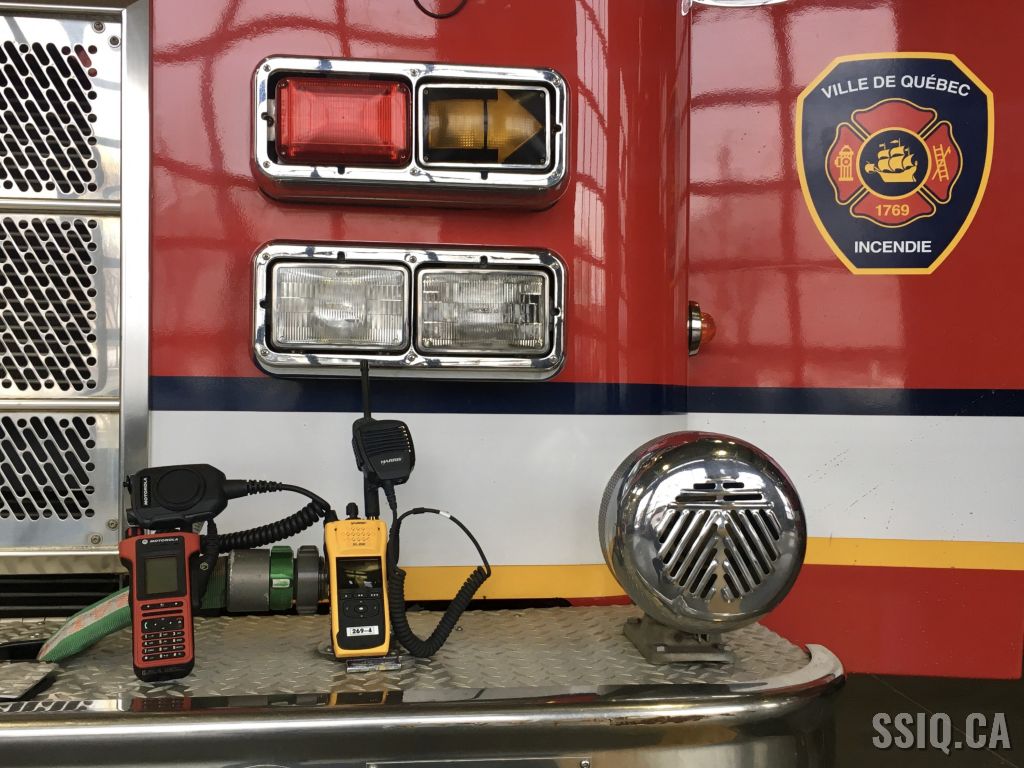 Le TETRA Motorola MTP8550Ex, un terminal portatif de couleur rouge. Il permet de communiquer avec la centrale 911, les véhicules et casernes du SPCIQ, ainsi qu’avec tout autre appareil TETRA partout sur le territoire de l’agglomération de Québec. Il est à sécurité intrinsèque, c’est-à-dire que les risques d’explosions en milieu gazier sont réduits. Sa pile à une autonomie d’utilisation de 12 heures avant d’avoir à être rechargée. Ce radio robuste est submersible à une profondeur de 1 mètre pendant 30 minutes et résiste aux jets d’eau sous pression.