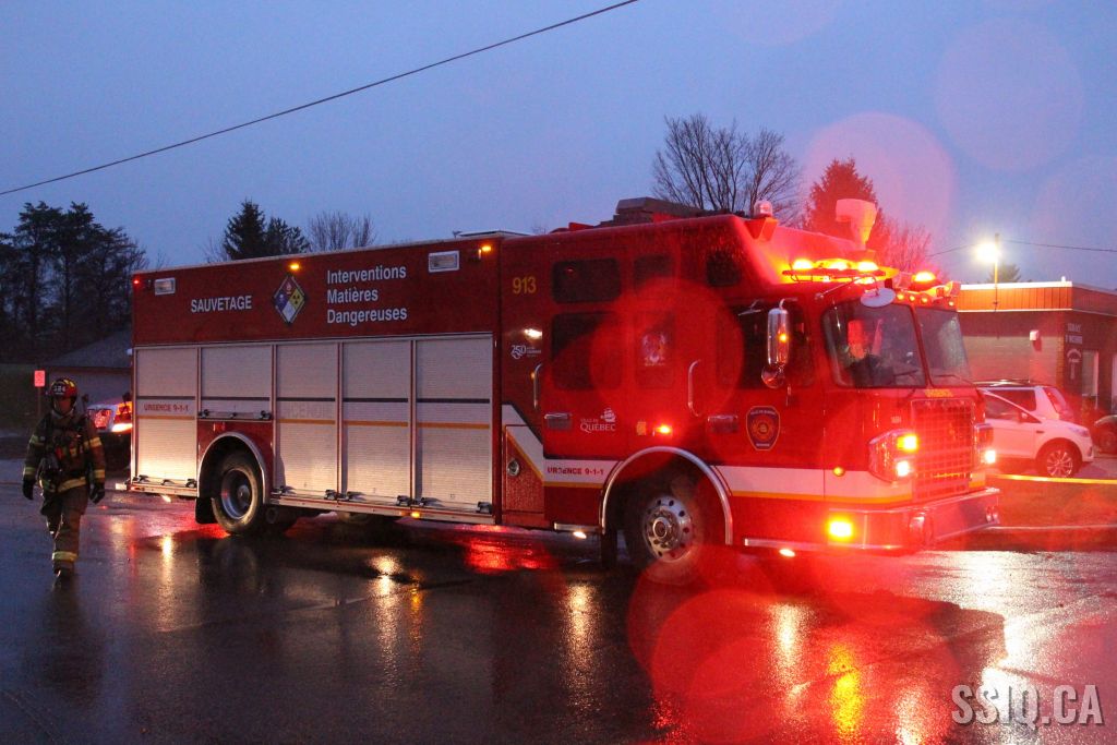En fin de journée ,les pompiers de la caserne 13 furent demandés en entraide pour une fuite de gaz chimique dans une usine de Portes et fenêtres de St-Agapit sur la rive sud de Québec. Après quelques heures la situation fut mise sous contrôle.