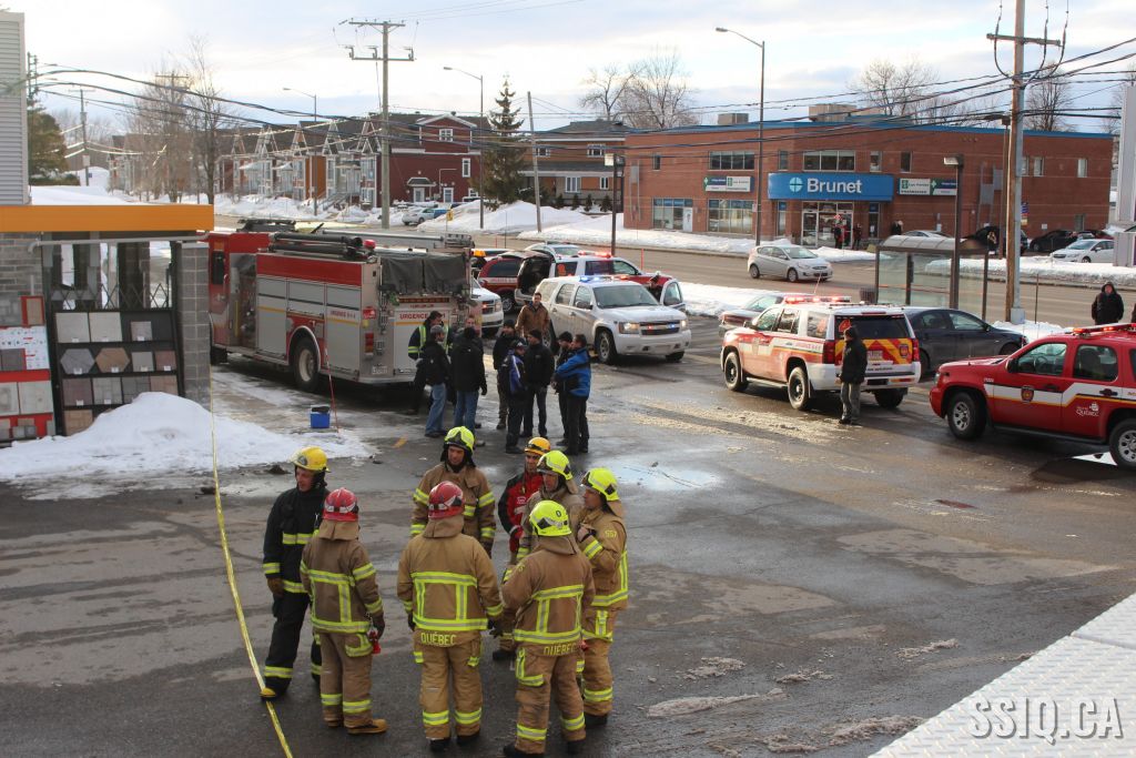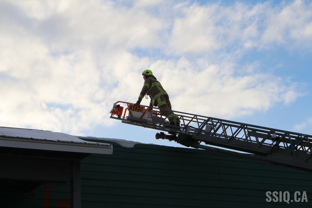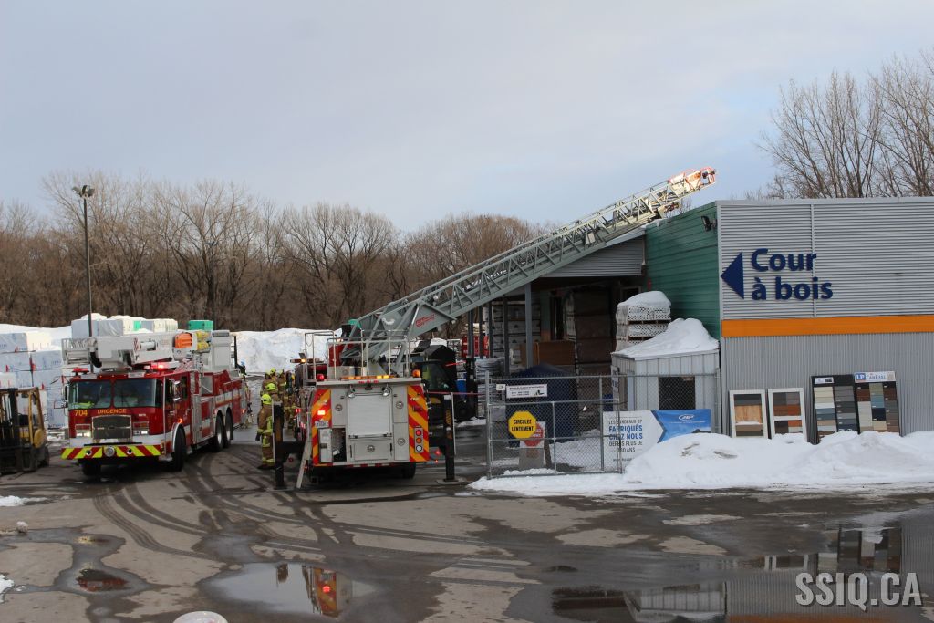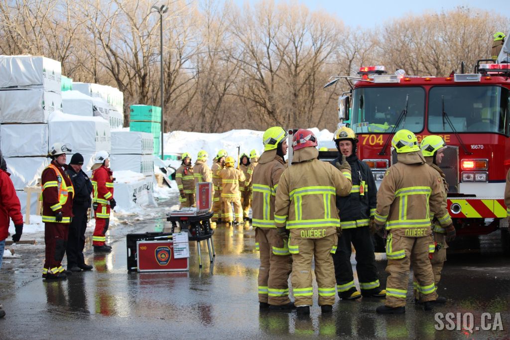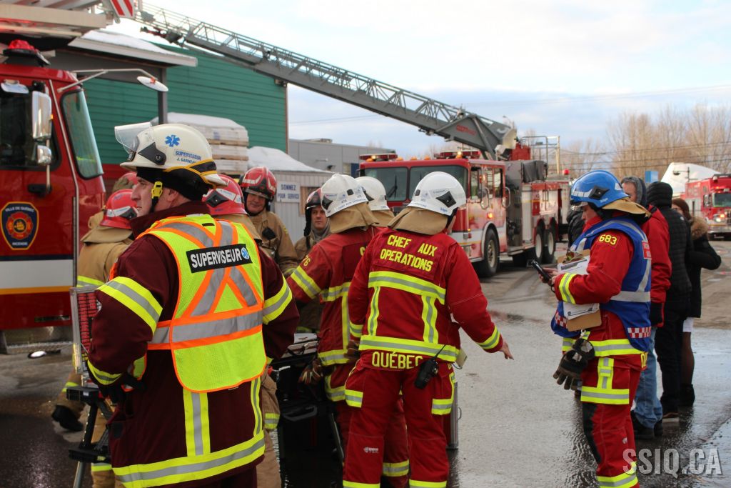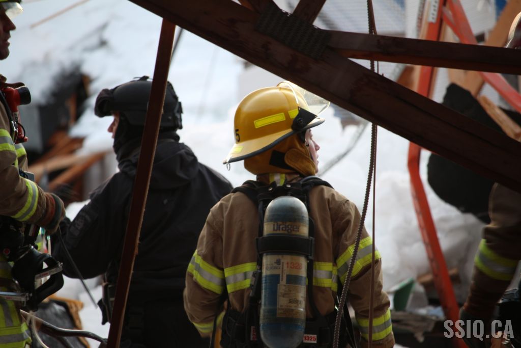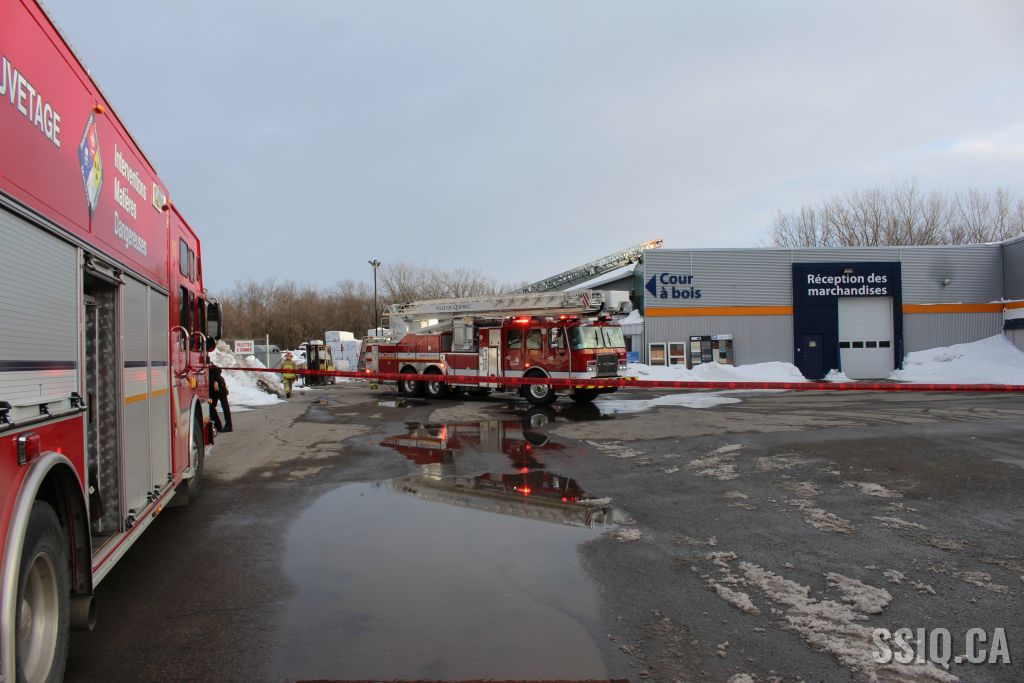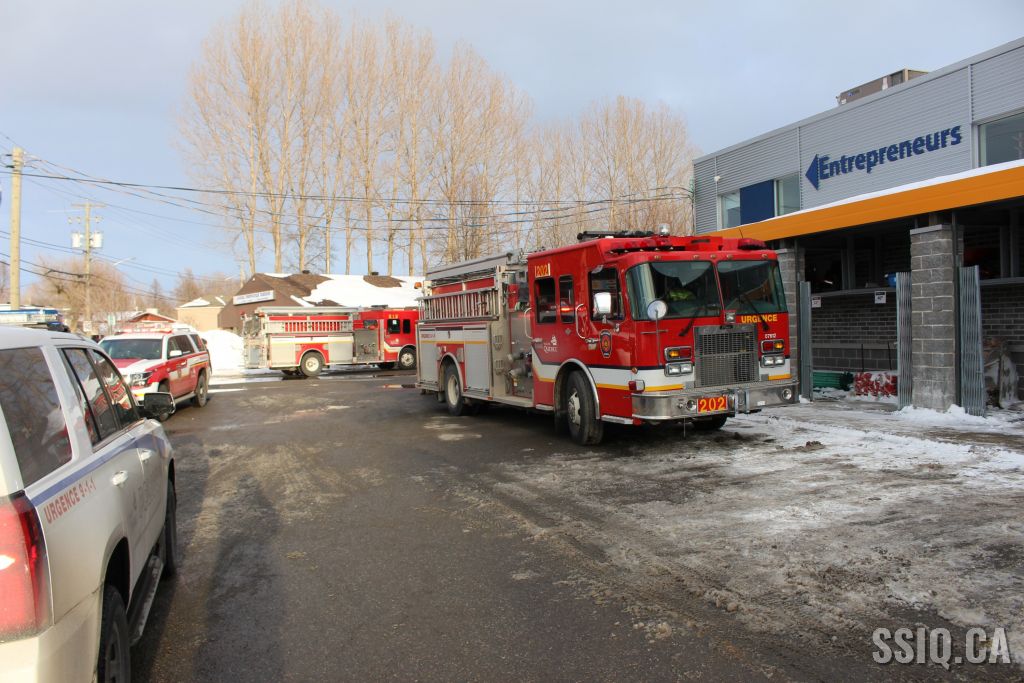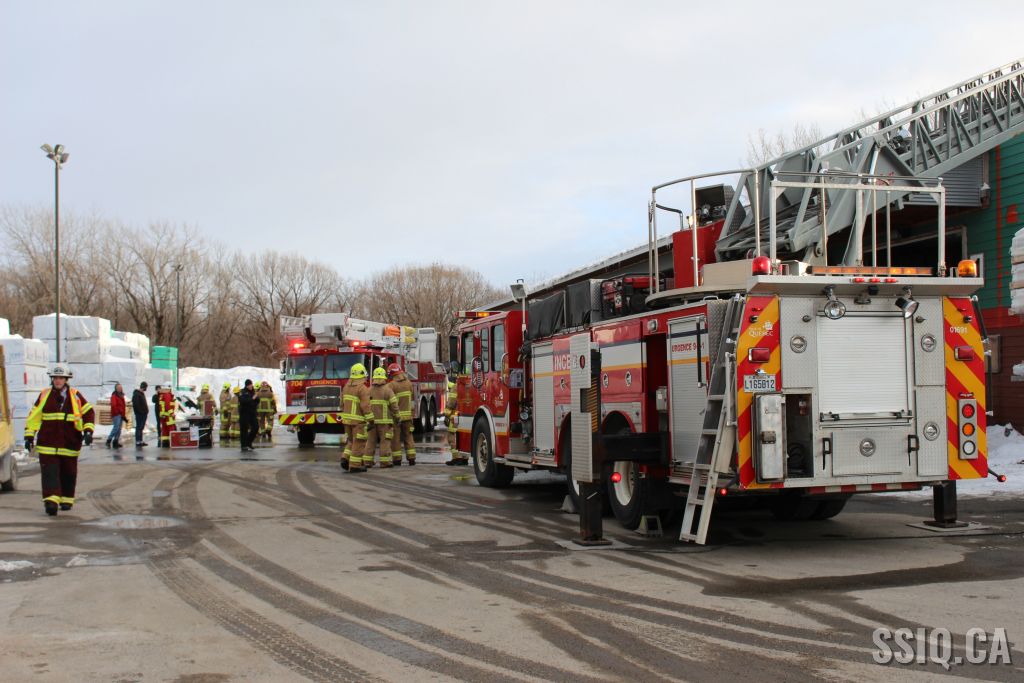 Le toit d'un entrepôt de grande superficie de l'entreprise Rona a exigé un déploiement considérable de ressources. Bien que, initialement, le plaignant croyait qu'il n'y avait personne à l'intérieur, une discussion entre les responsables n'a pu garantir cette information à 100%. Les ressources spécialisées en espace clos et un maître-chien du SPVQ ont donc été dépêchées sur les lieux. Après de méticuleuses vérification, il a été confirmé que personne n'était coincé sous les débris.