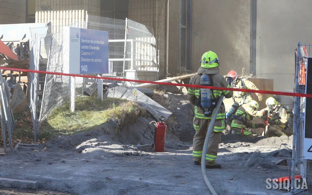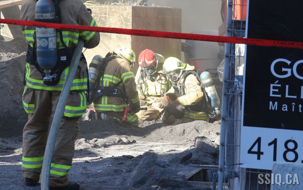 Le 201 et le 501 établissent un jet de protection et procèdent à l'évacuation du chantier en attendant les équipes de matière dangereuse, la caserne #1 est également évacuée.