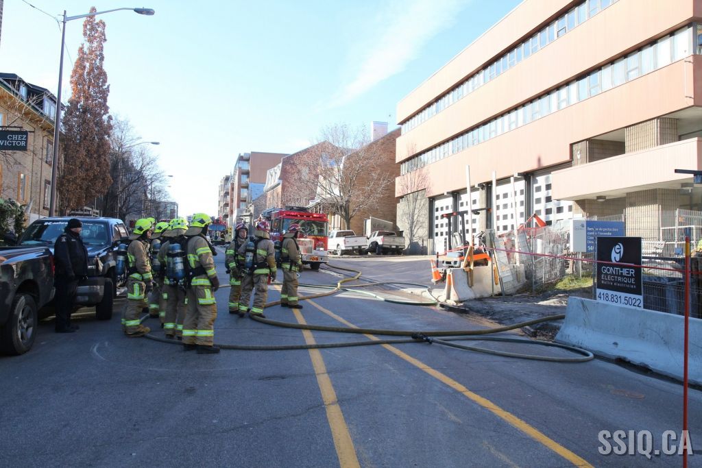 Les équipes des casernes 5 et 13 vérifieront des bâtiments sur la rue Richelieu ainsi que la rue Saint-Jean, mais aucune lecture n'est détectée.