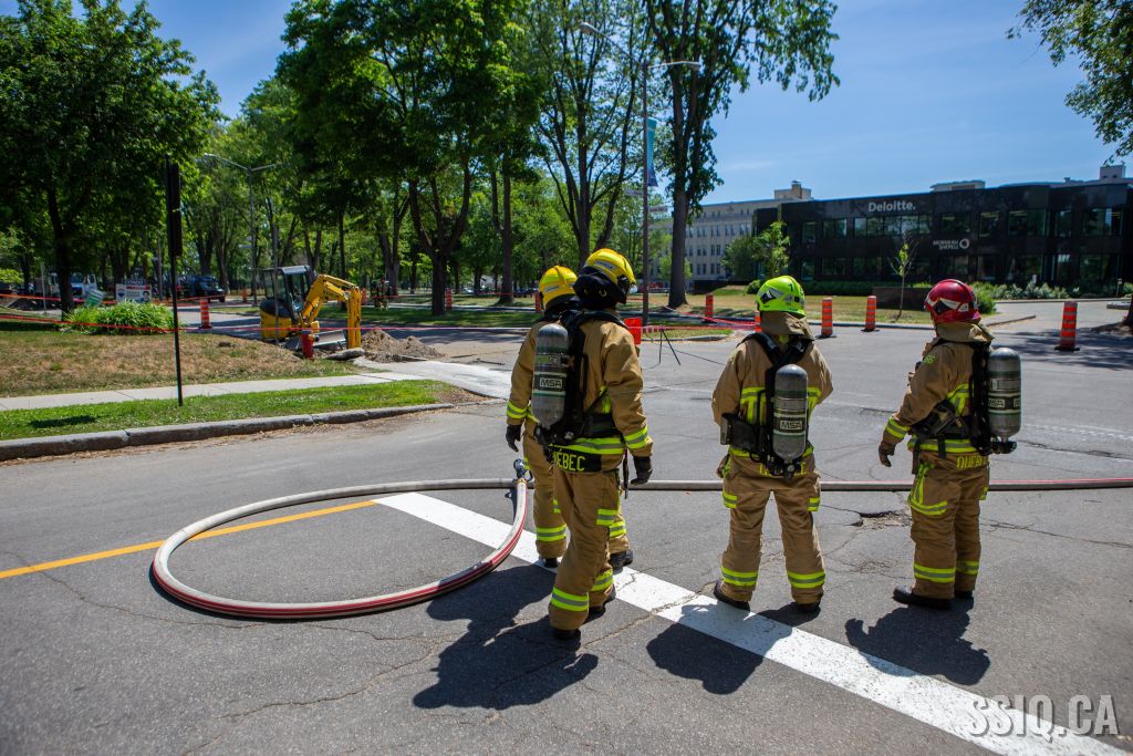 En arrivant sur les lieux, le chef Richard (122) confirme la fuite. La compagnie Énergir est alors demandée sur place pour participer aux opérations. Des jets sont déployés par mesure de sécurité.