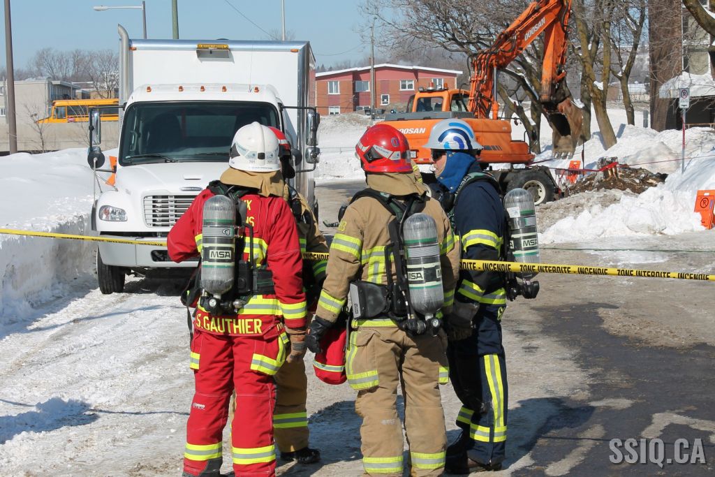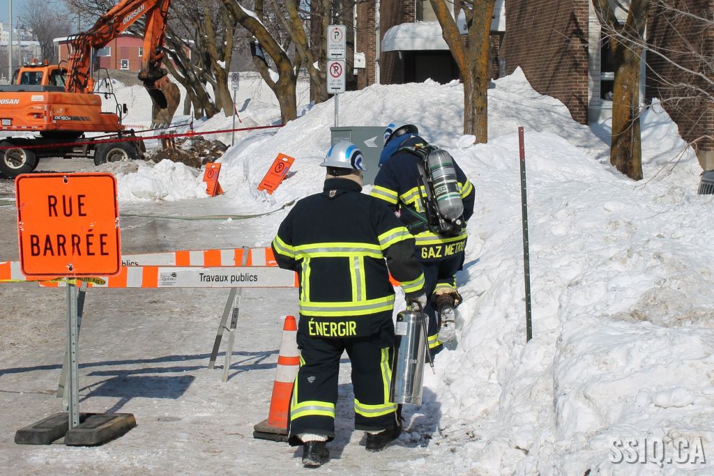 Une fois arrivé sur place , l'officier du 204 mentionne qu'il y a des travaux d'excavation . Quelques instants plus tard , l'officier du 204 confirme bel et bien une fuite de gaz sur un conduit d'un pouce .