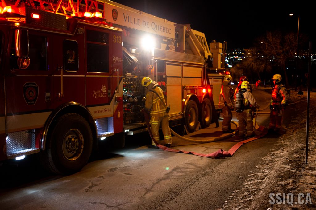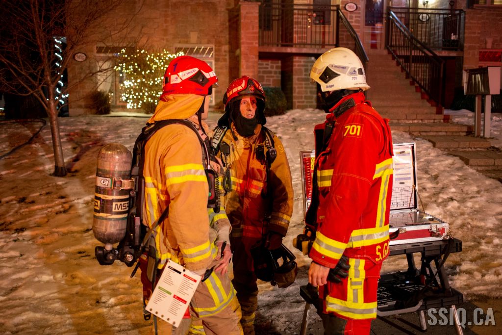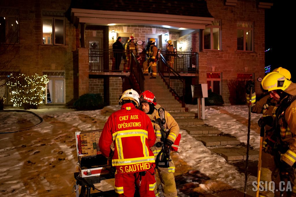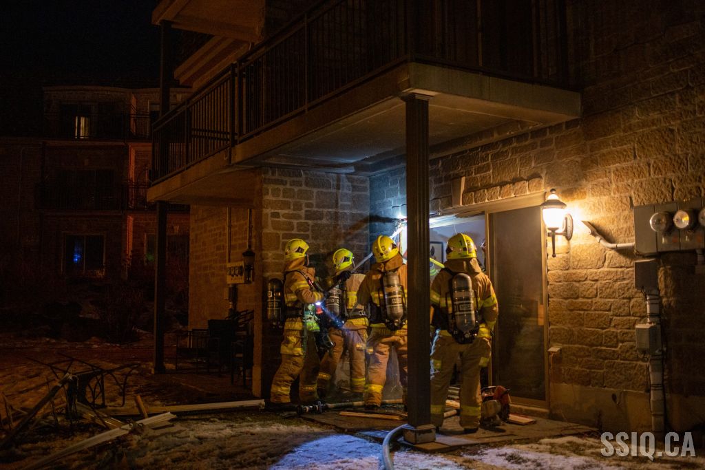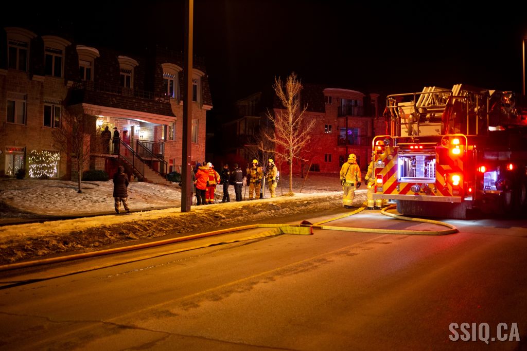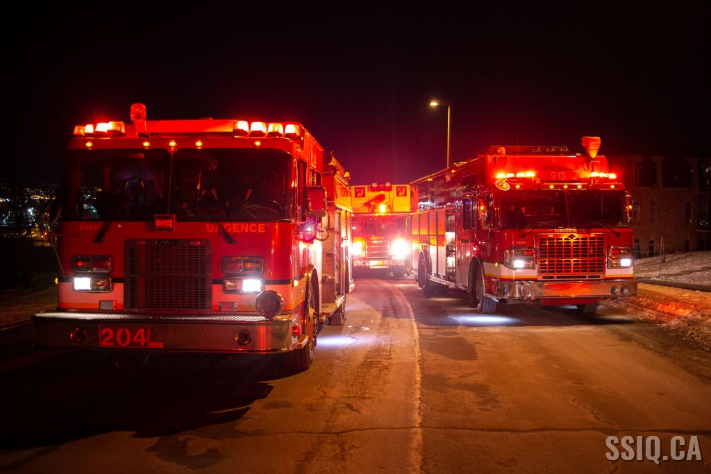 Plusieurs appels ont été logés à la centrale 911 pour signaler l'incendie. Les détails font mention d'un BBQ en feu sur un balcon, de flammes imposantes et d'explosion de la bonbonne de gaz. Avec ces informations, le chef Gauthier (143) confirme que l'intervention sera nécessaire.