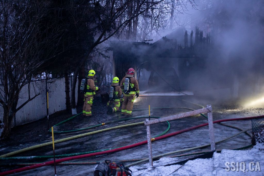 En fin de journée, un violent incendie dans un garage à nécessité l'intervention des pompiers au 7273 rue des Loutres, dans l'arrondissement Charlesbourg.