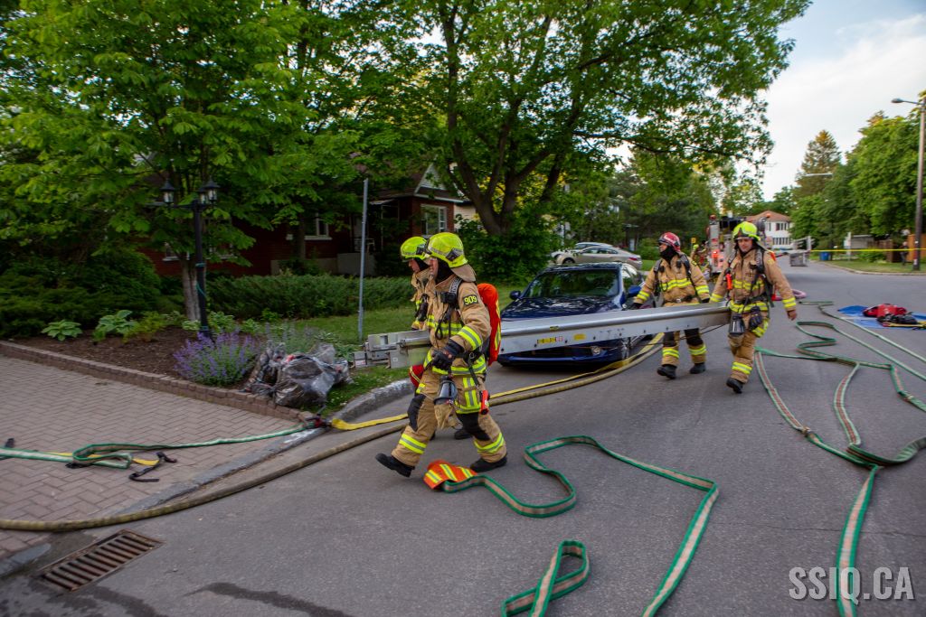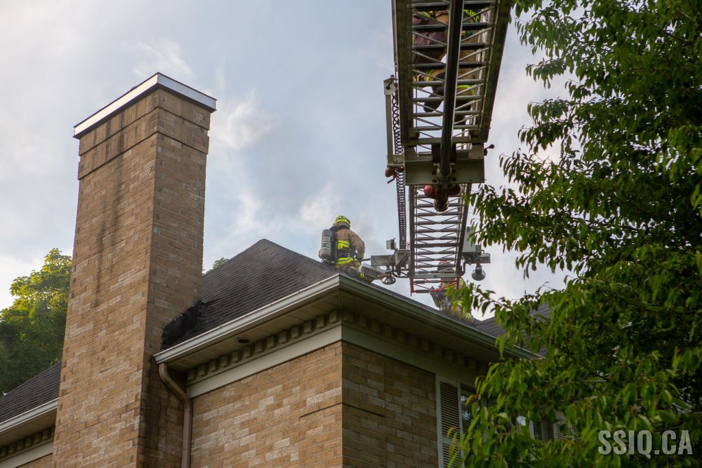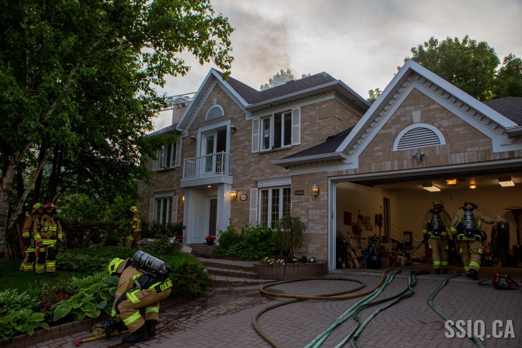 Une attaque est alors faite à l'intérieur pour rabattre les flammes. Le feu semble cependant avoir fait son chemin, par la structure, vers le 2e étage et l'entretoit. Des vérifications sont faites et des indices laissent croire que les flammes se sont propagées dans l'entretoit. Les conditions de fumée de détériorent, l'intervention monte alors en 2e alarme.