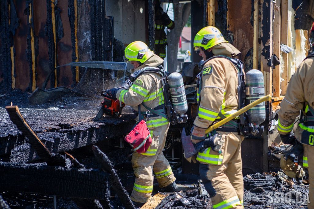 Malgré l'attaque agressive, le feu a une longueur d'avance et les dommages sont très importants à la résidence.