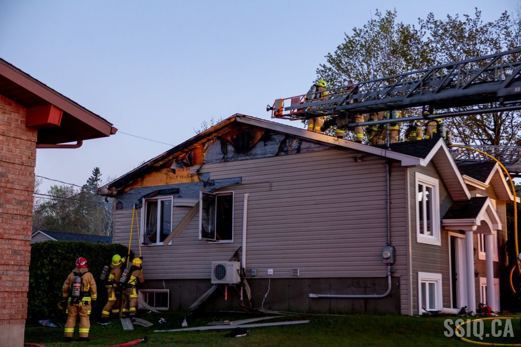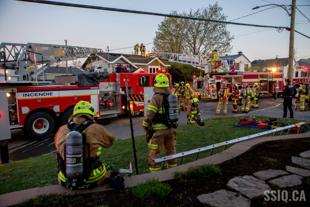 Avec ces détails, et alors qu'il est en route vers l'intervention, le chef Fiset (133) confirme que l'intervention sera nécessaire. Arrivé sur les lieux, l'officier du 217 demande de compléter la 2e alarme. Le feu fait rage à l'arrière de la maison et se propage au toit.