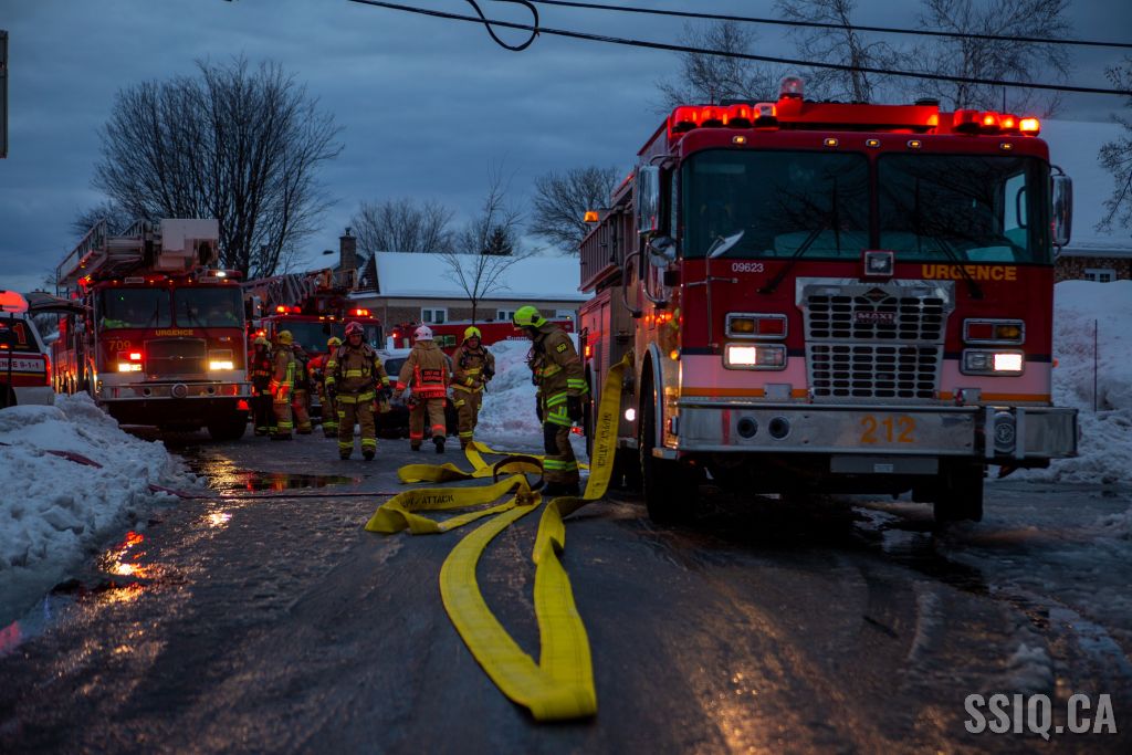 En début de soirée, les pompiers sont intervenus pour un incendie nécessitant 2 alarmes au 1936 rue Victor-L.-Laurin, dans la ville de L'Ancienne-Lorette.