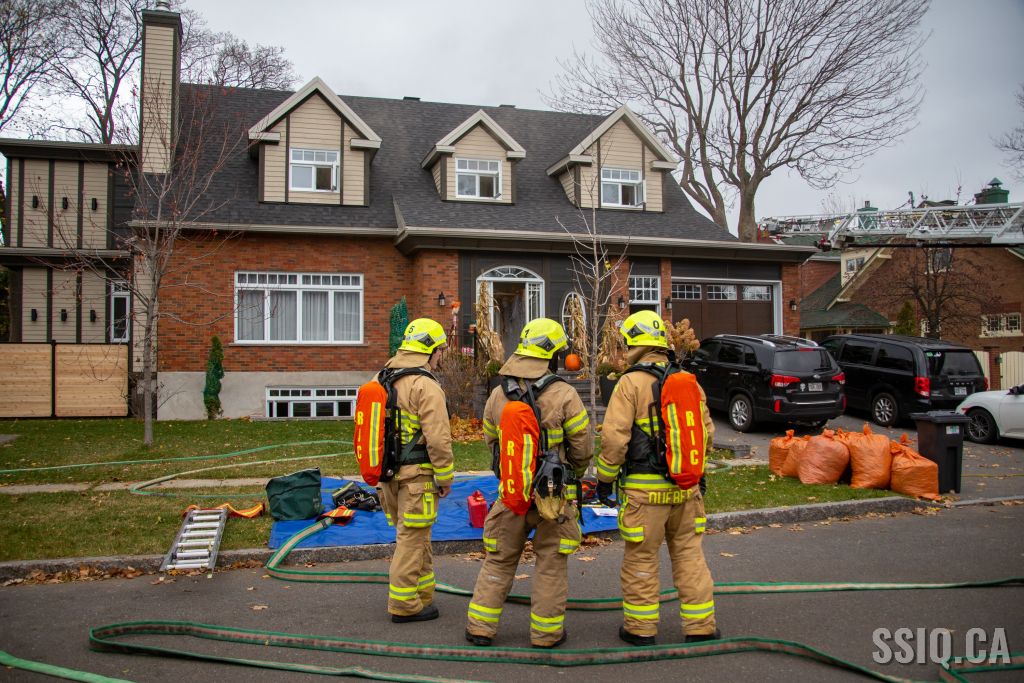 Sur place, l'officier du 709 confirme que l'intervention sera nécessaire. Il y a présence de fumée au sous-sol. Le foyer d'incendie est découvert et les flammes sont éteintes rapidement. Cependant, les conditions de fumées continuent de se dégrader, l'intervention monte alors en 2e alarme.