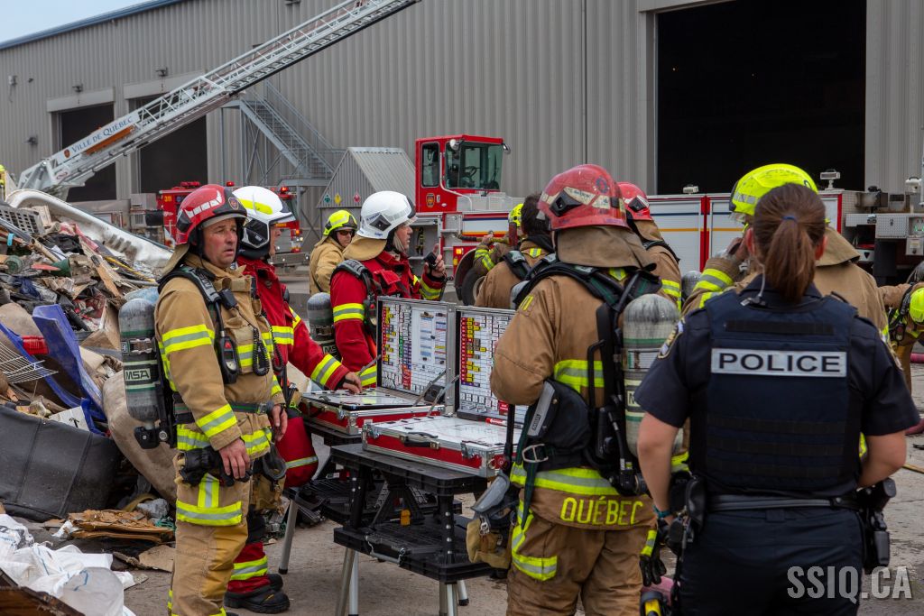 L'appel à la centrale 911 provient d'un employé de AIM Éco-Centre, les détails font mention d'un feu dans un convoyeur, dans un entrepôt de matériaux secs.