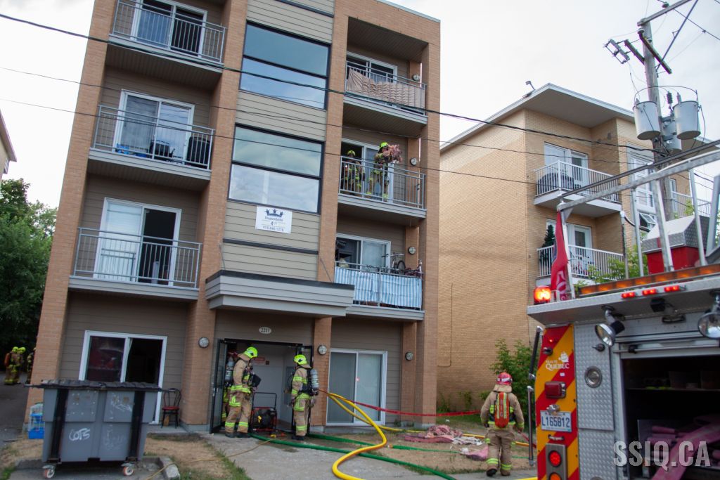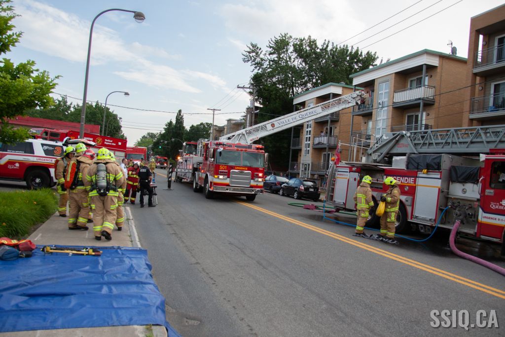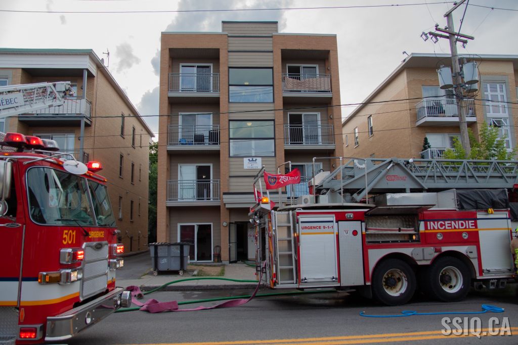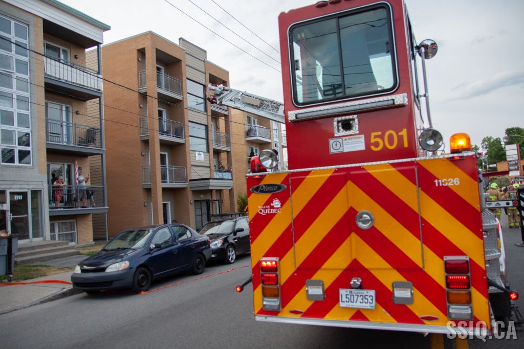 En fin de journée, les pompiers sont intervenus pour un incendie nécessitant deux alarmes dans un immeuble a logement de quatre étages, 2211 chemin de la Canardière, dans l'arrondissement La Cité-Limoilou.