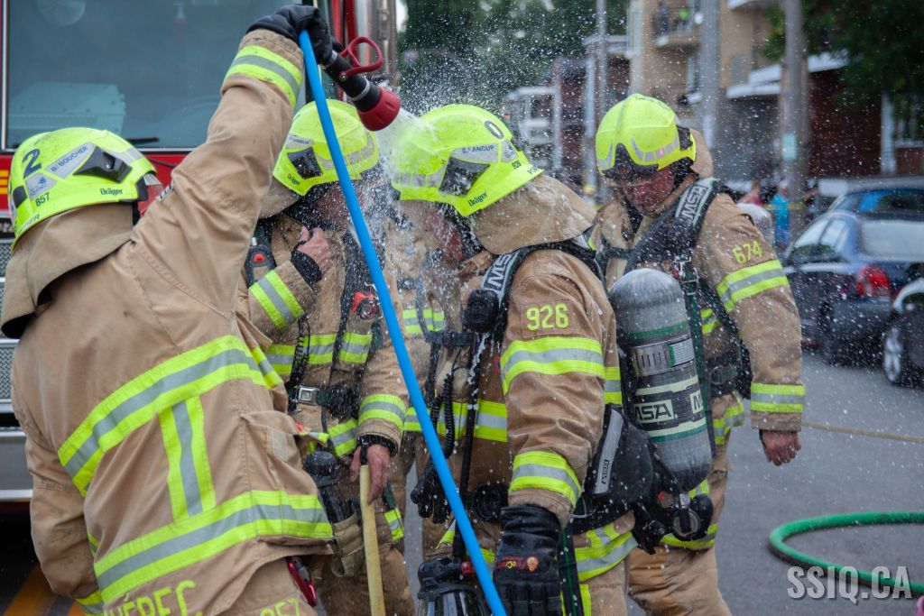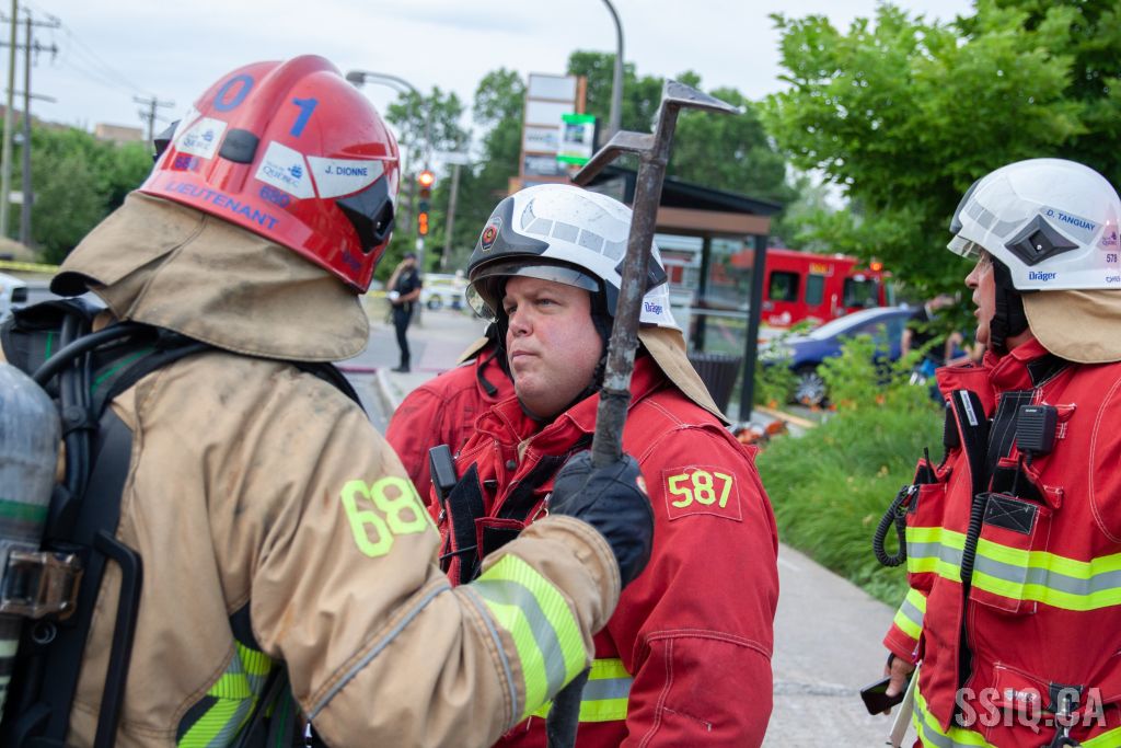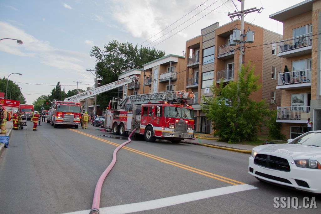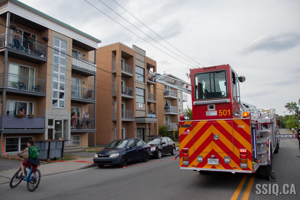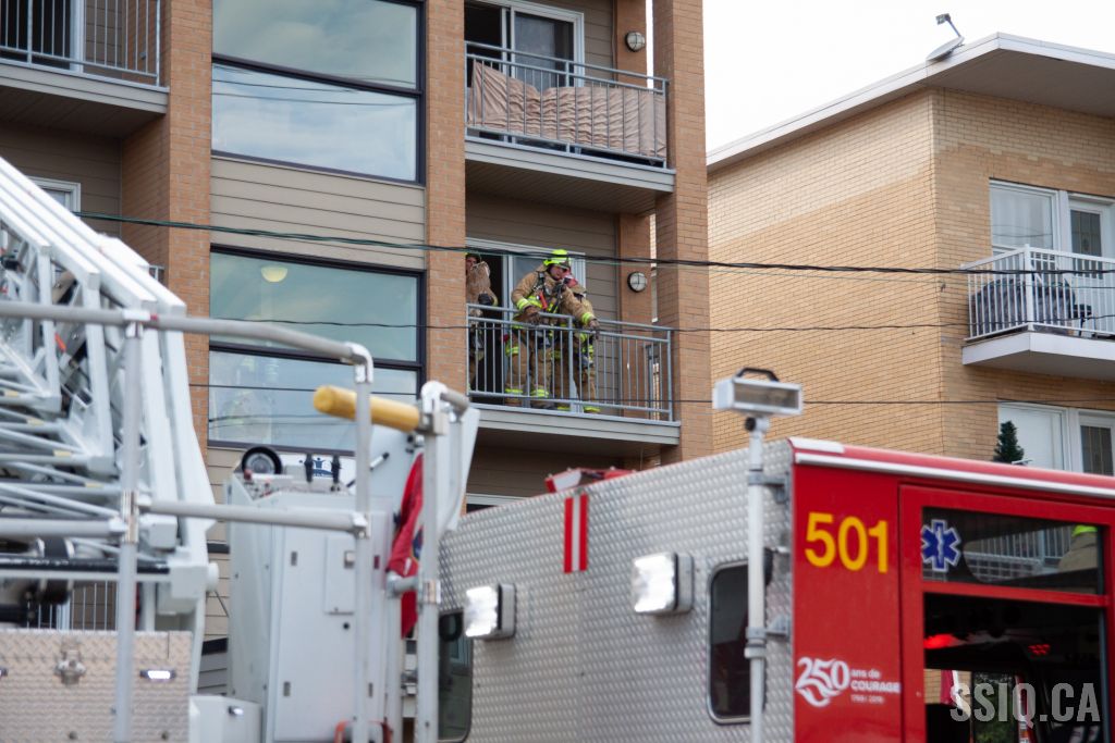 En fin de journée, les pompiers sont intervenus pour un incendie nécessitant deux alarmes dans un immeuble a logement de quatre étages, 2211 chemin de la Canardière, dans l'arrondissement La Cité-Limoilou.