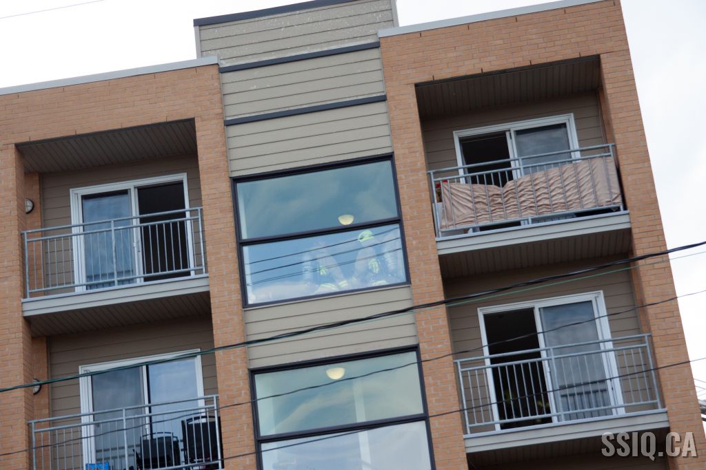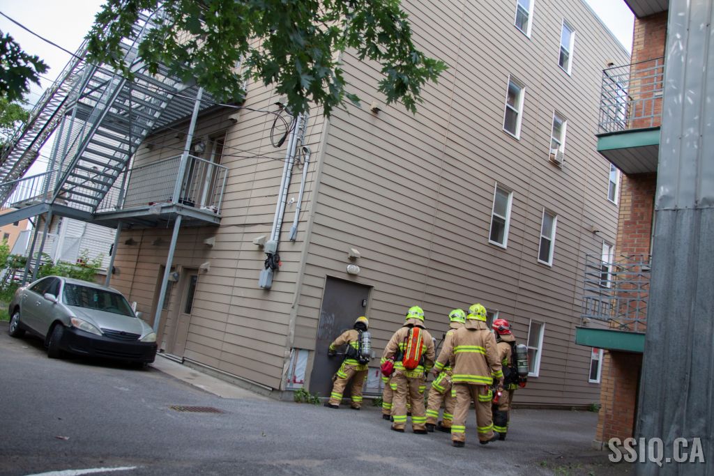 La centrale 911 a reçu un appel d'un résident de l'endroit qui faisait mention d'une alarme incendie en fonction ainsi que de fumée visible au 3e étage.