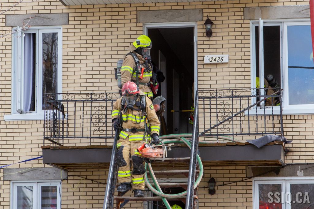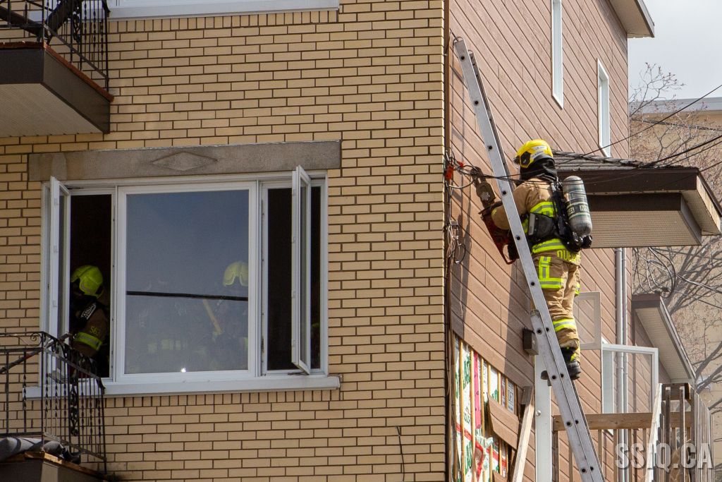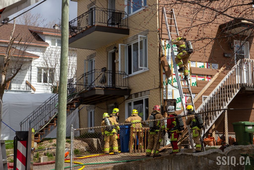 L'appel est logé à la centrale 911 par un résident de l'endroit. Les détails font mention d'un feu à l'extérieur d'un immeuble, et que les flammes se propagent au parement extérieur.