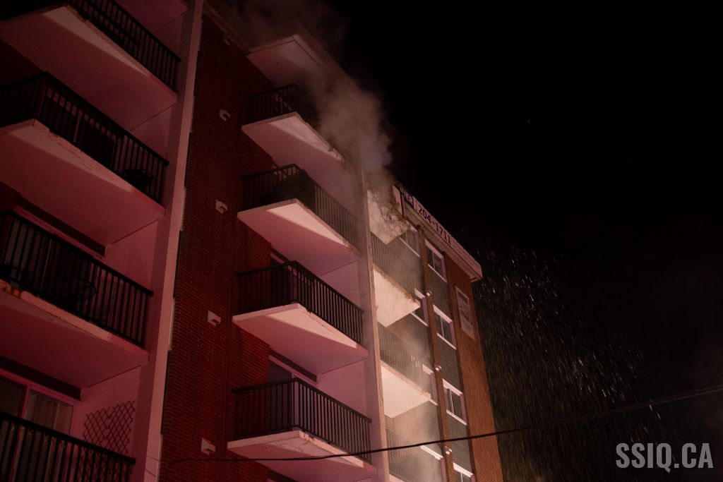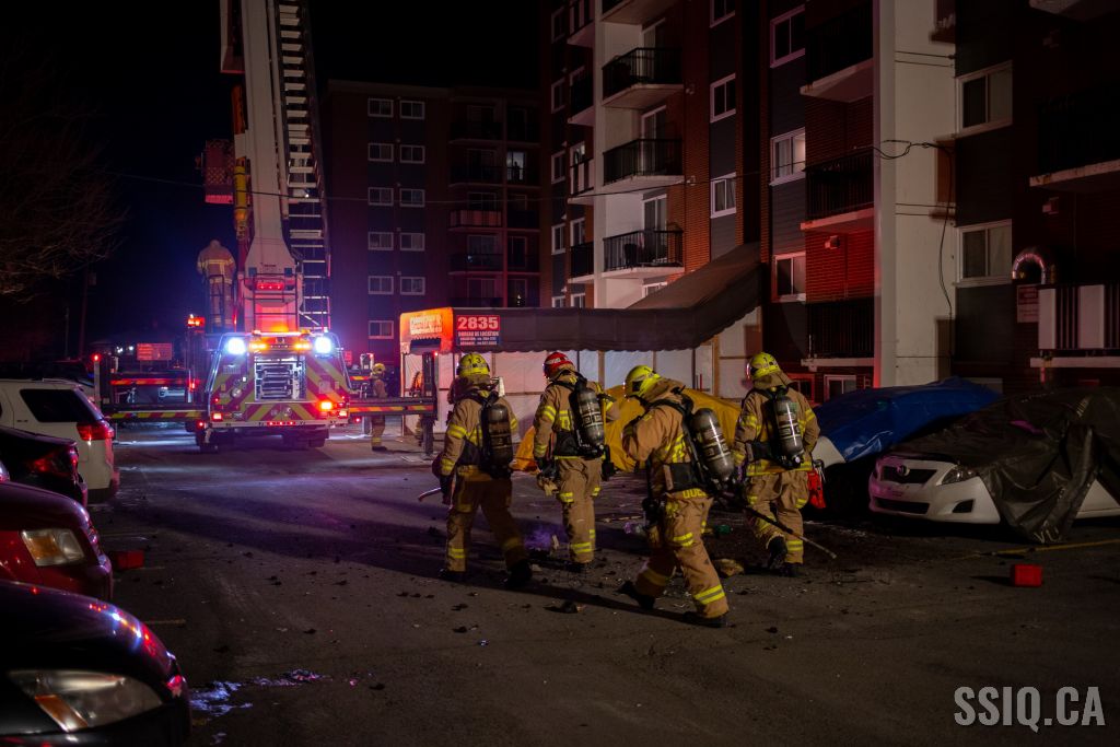 Cette nuit, les pompiers sont intervenus pour un incendie nécessitant 2 alarmes, dans un immeuble locatif de grande hauteur, au 2835 rue de la Concorde de l'arrondissement La Cité-Limoilou.