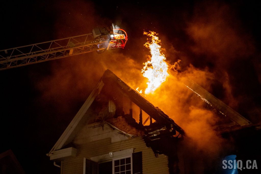 Cette nuit, les pompiers ont combattu un incendie nécessitant 2 alarmes au 3484 rue des Géraniums, dans l'arrondissement Les Rivières.