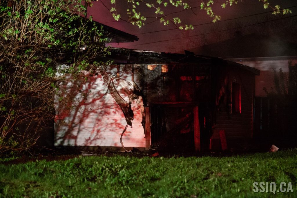 Sur les lieux, l'officier du 207 confirme la situation. Le feu est éclaté dans un cabanon adjacent à la résidence, et les flammes se propagent au bâtiment principal. L'intervention montera en 2e alarme.