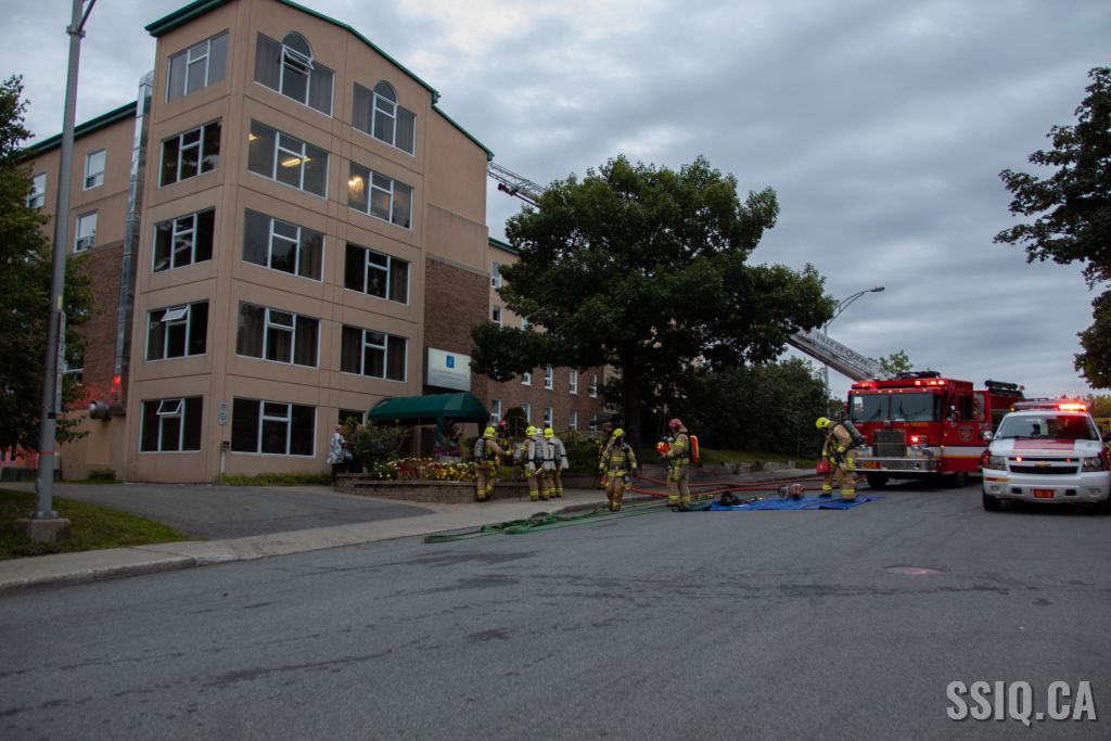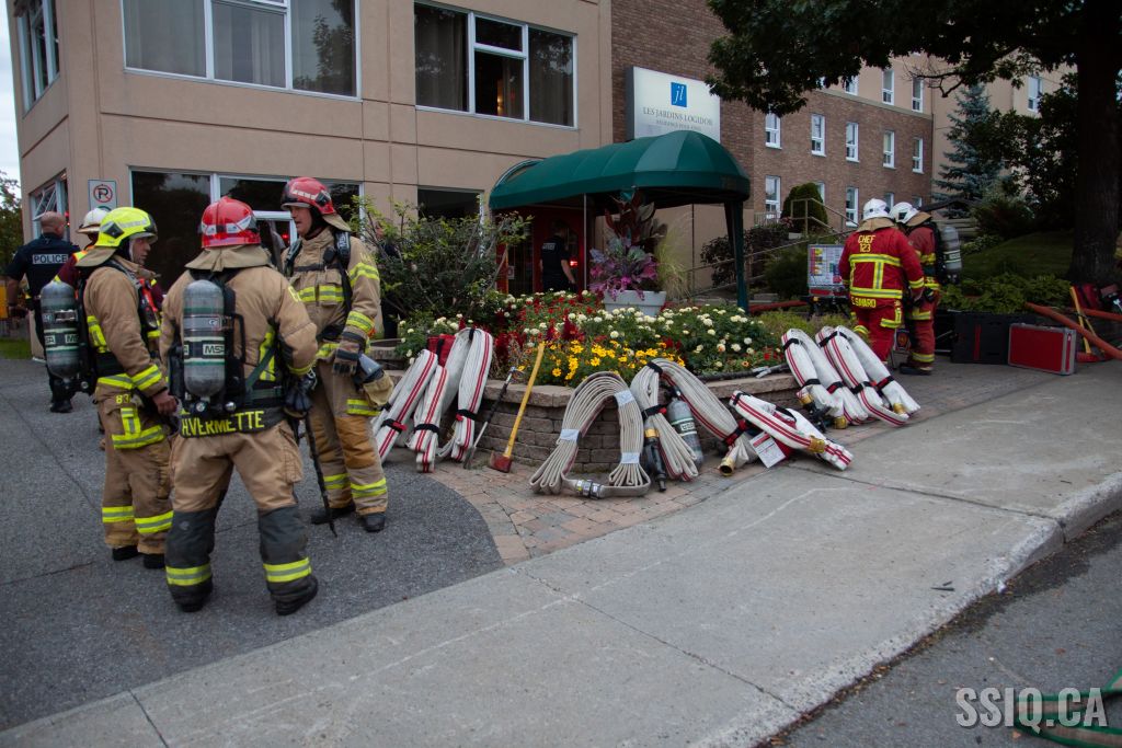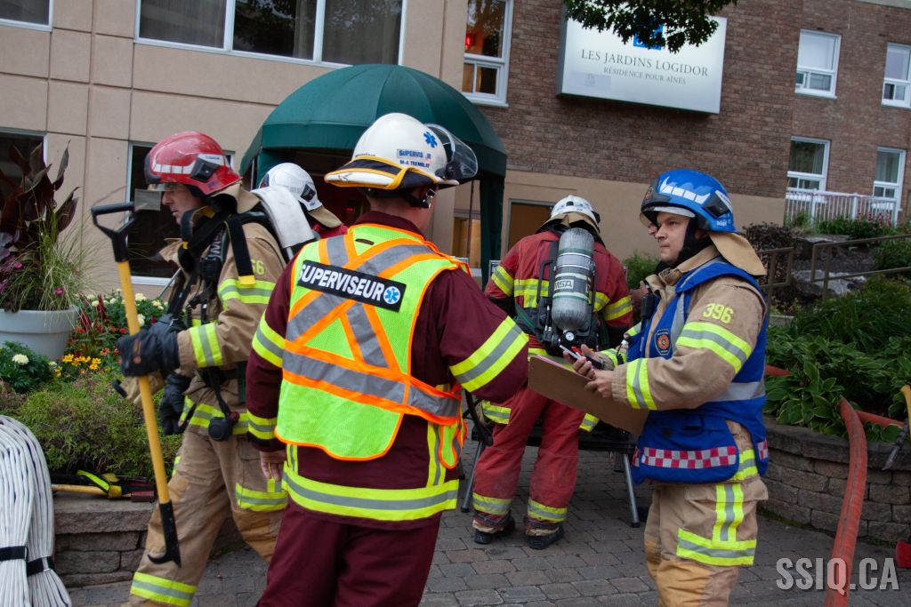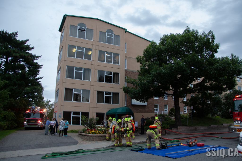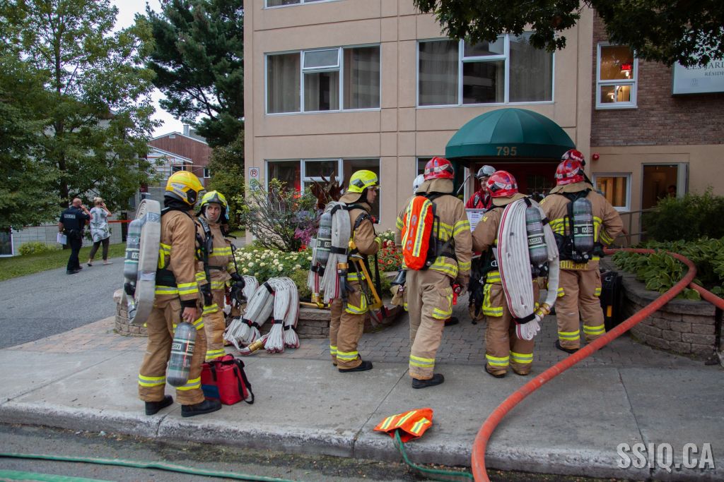 Étant donné qu'il s'agit d'un immeuble résidentiel pour personnes âgées, le chef 123 ne prend aucune chance et déclare l'intervention nécessaire alors que toutes les unités sont toujours en route vers l'intervention.
