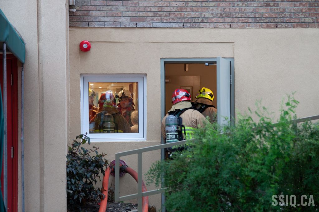 Pendant que les employés de la résidence et les policiers procèdent à l'évacuation des résidents, les premières équipes rabattent très rapidement les flammes. Les flammes seront contenues dans l'appartement d'origine, mais plusieurs vérifications de propagation auront lieu.