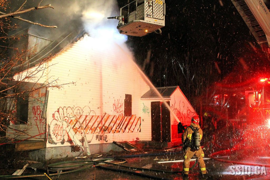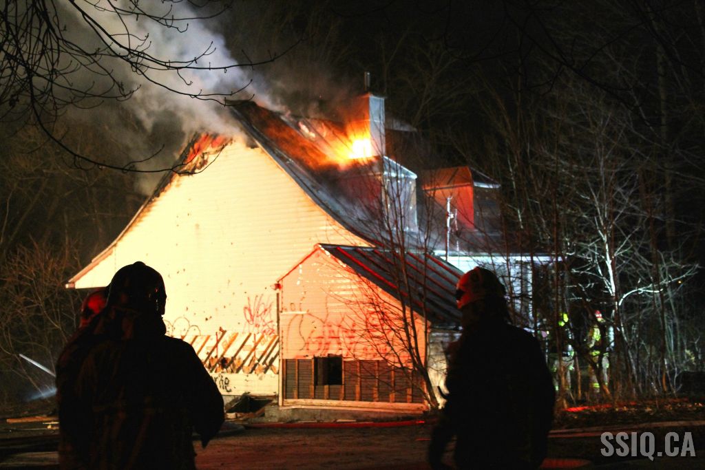 Cette nuit, les pompiers ont combattu un incendie nécessitant 2 alarmes dans un bâtiment abandonné derrière le 2285 Chemin Saint-Louis, dans l'arrondissement Sainte-Foy-Sillery-Cap-Rouge.