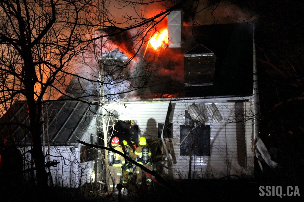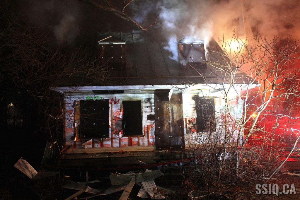 Les recherches dans le secteur dirigent les équipes vers un bâtiment abandonné en retrait du Chemin Saint-Louis. Alors que l'équipe du 215 est en approche, l'officier déclare l'intervention nécessaire, le feu est éclaté dans un bâtiment abandonné. Rapidement l'intervention monte alors en 2e alarme par précaution afin d'acheminer les ressources nécessaires.