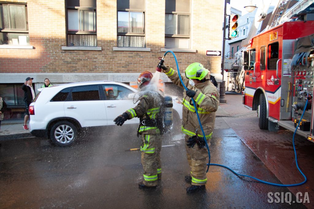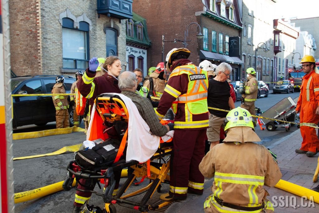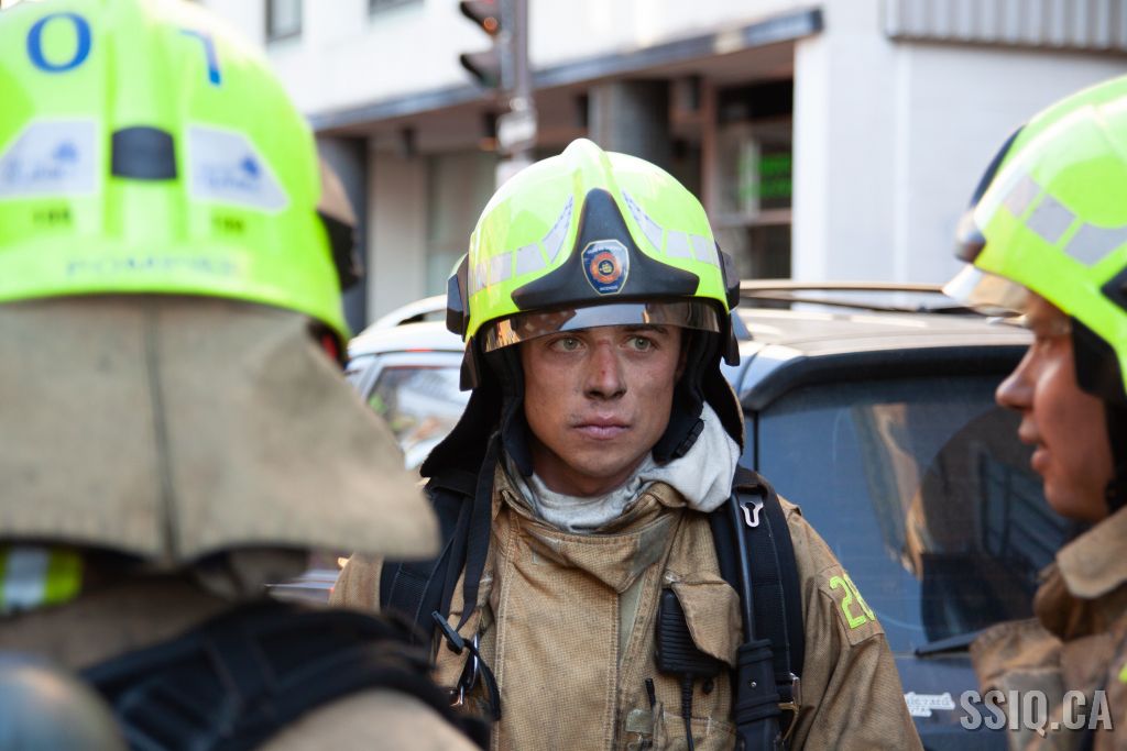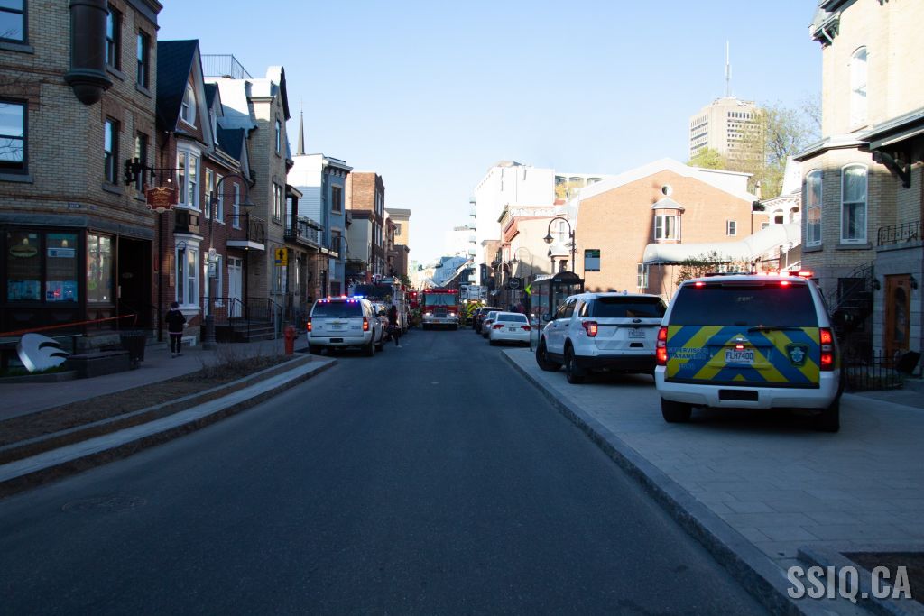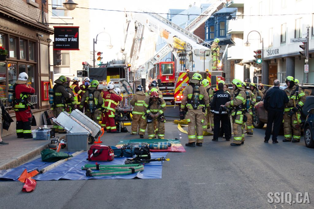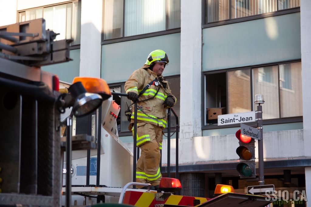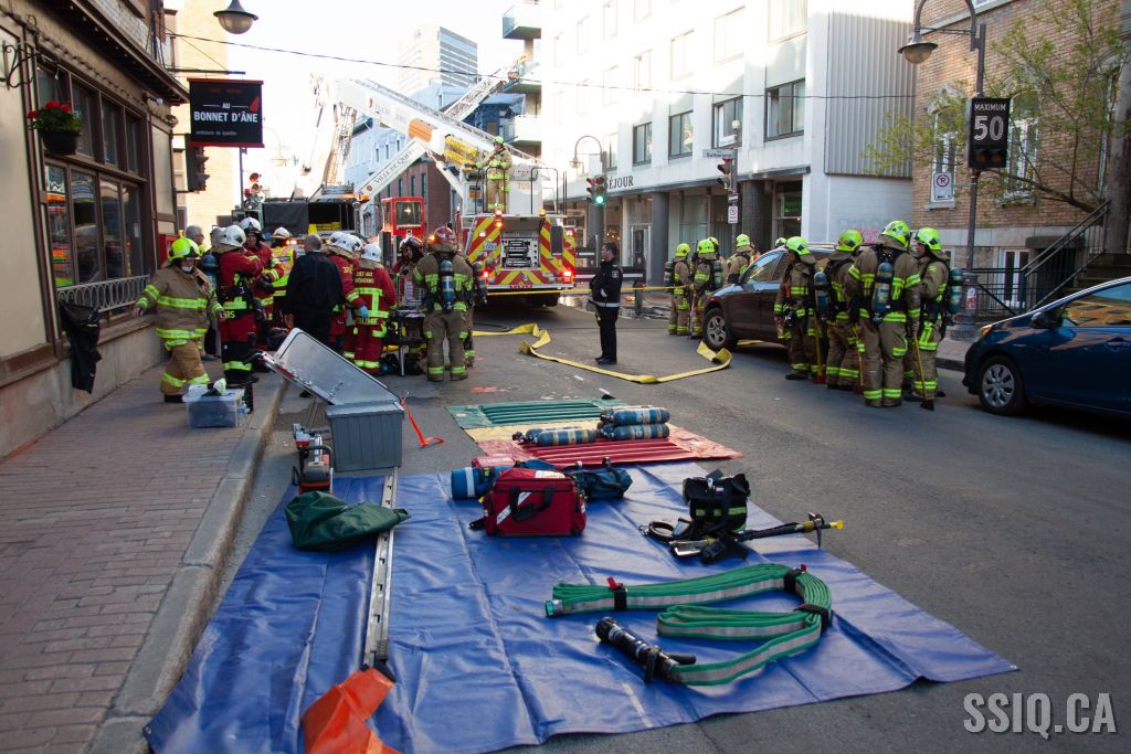 Intervention majeure pour les pompiers de Québec, en début de soirée, pour un incendie dans un immeuble à logements de grande hauteur de la rue Saint-Jean.