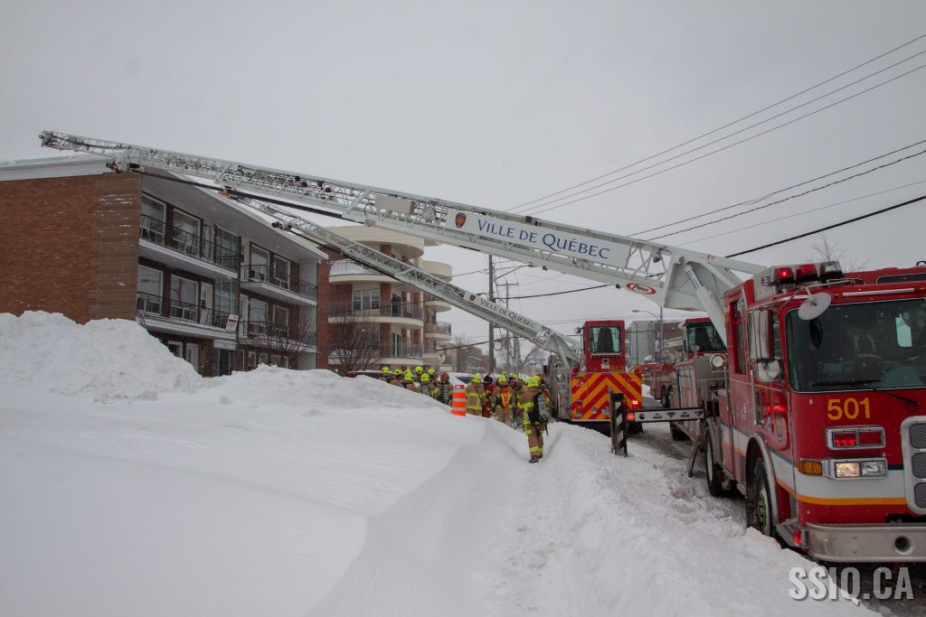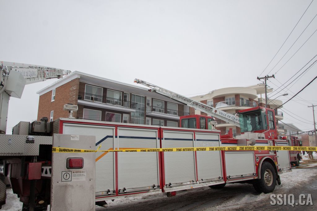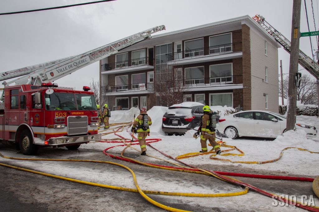 Cet après-midi, les pompiers sont intervenus pour un incendie dans un immeuble résidentiel locatif de trois étages, situé sur le Chemin Sainte-Foy, dans l'arrondissement Sainte-Foy-Sillery-Cap-Rouge.