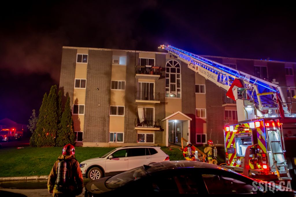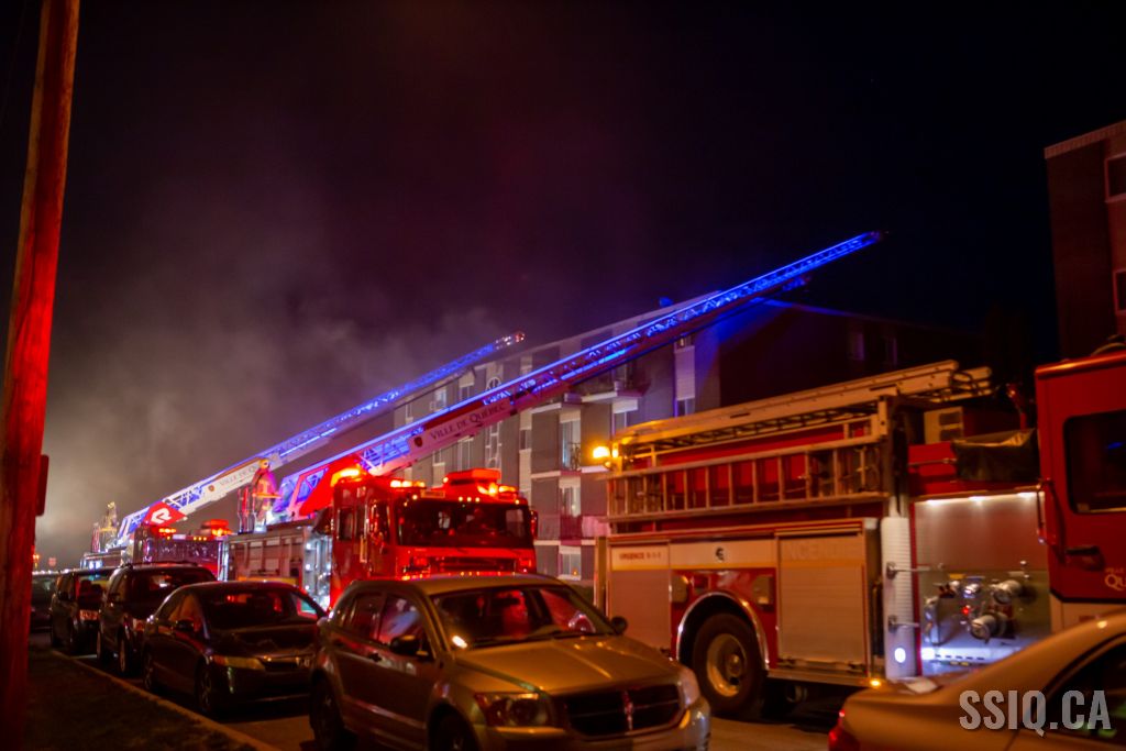 Cette nuit, un incendie dans un immeuble multilogements de 3 étages a nécessité le déploiement d'une 3e alarme au 44 rue Paquet, dans l'arrondissement La Haute-Saint-Charles.