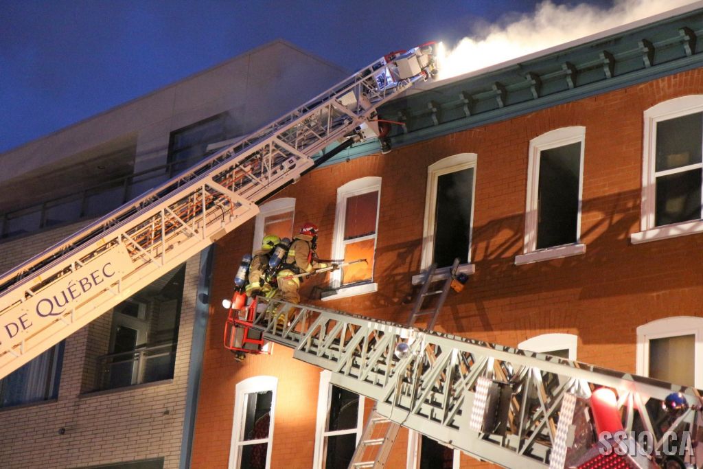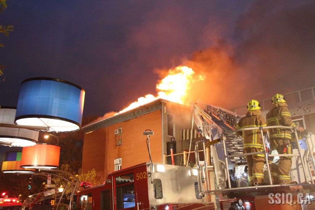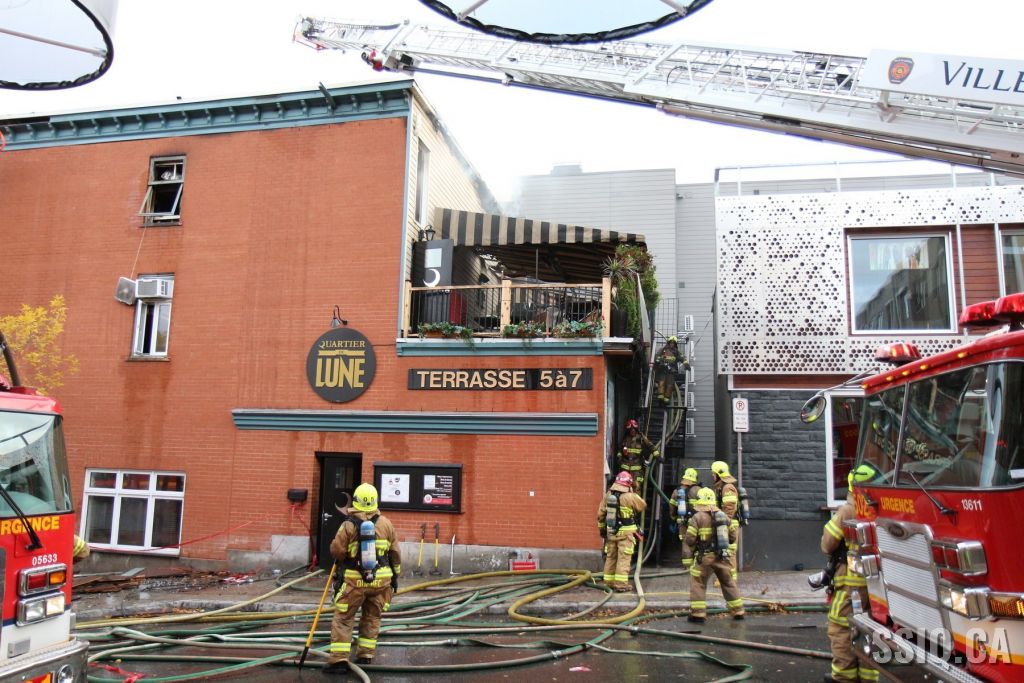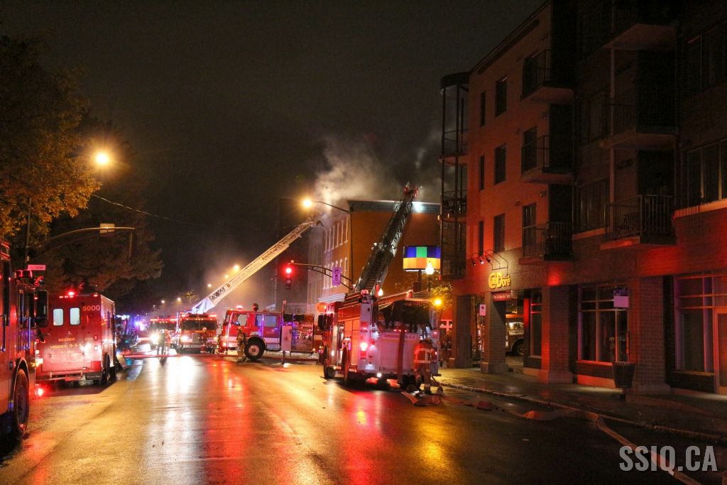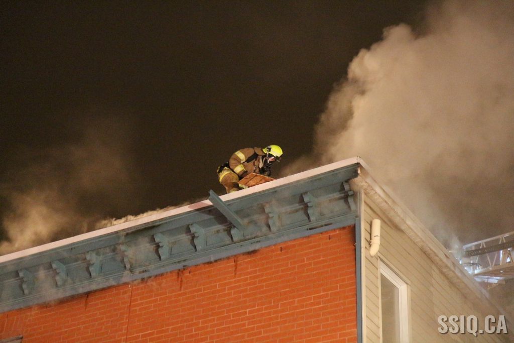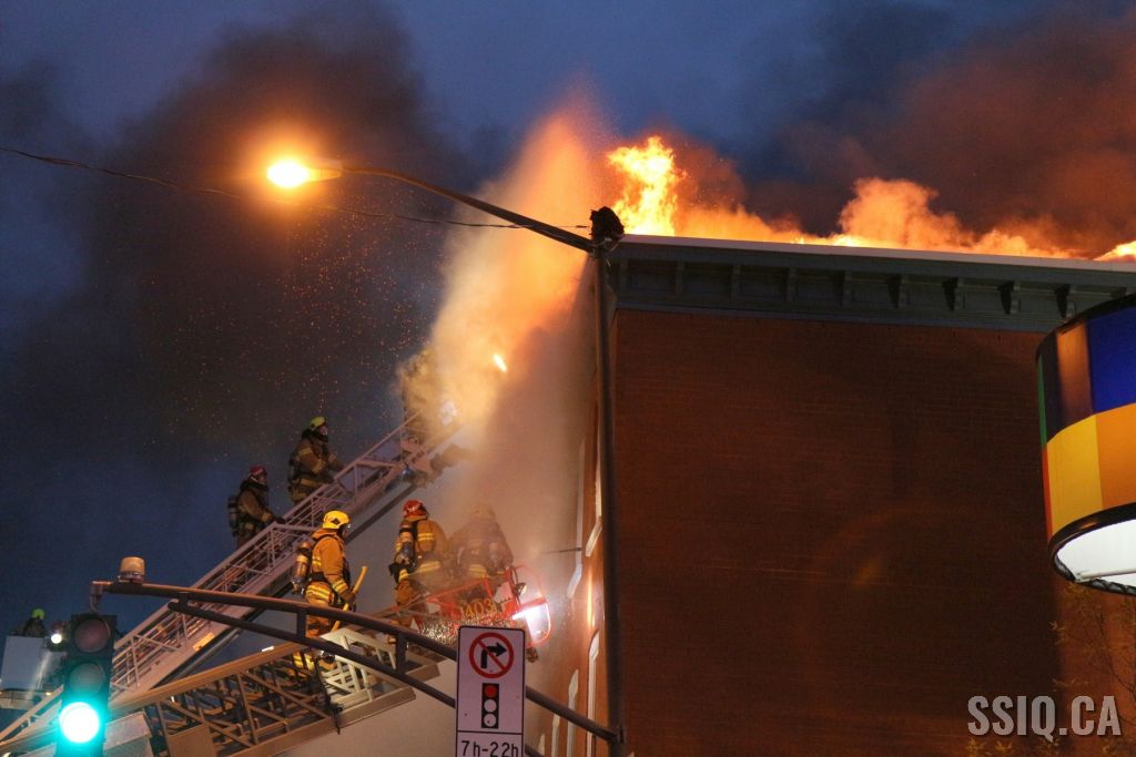 Plusieurs appels entrent au 9-1-1 pour signaler des flammes et de la fumée apparentes au niveau de la toiture. Le 201 partant de la caserne 1 non loin de là, arrive très rapidement et confirme une fumée apparente et ordonne l'intervention nécessaire. Les pompiers procèdent à l'évacuation.