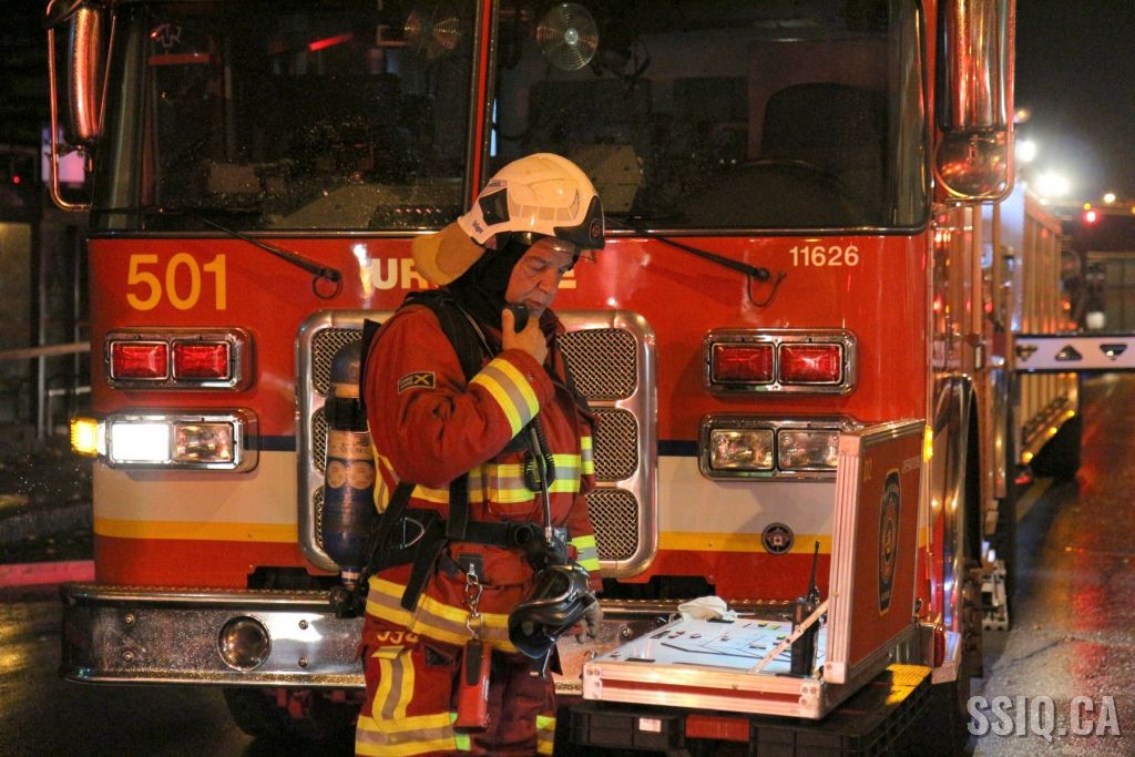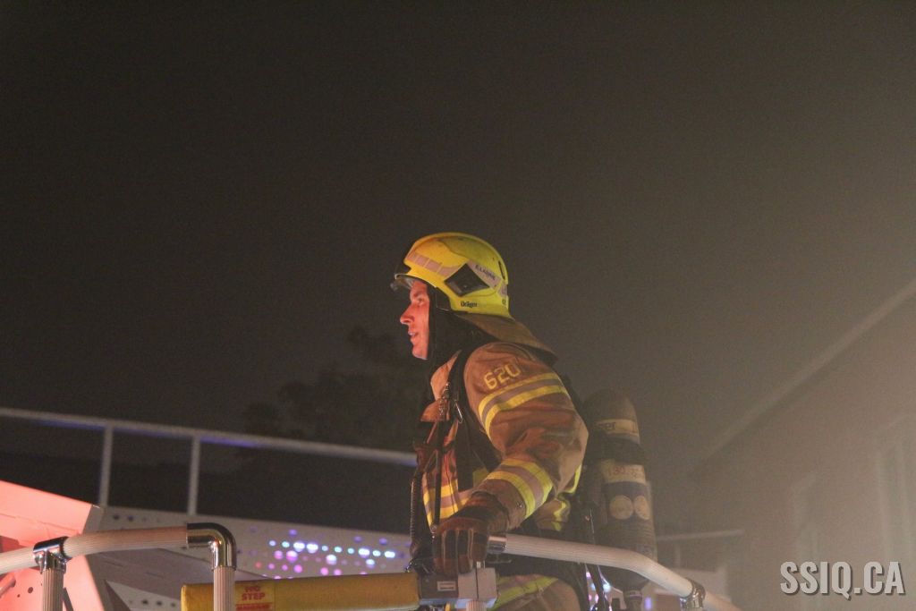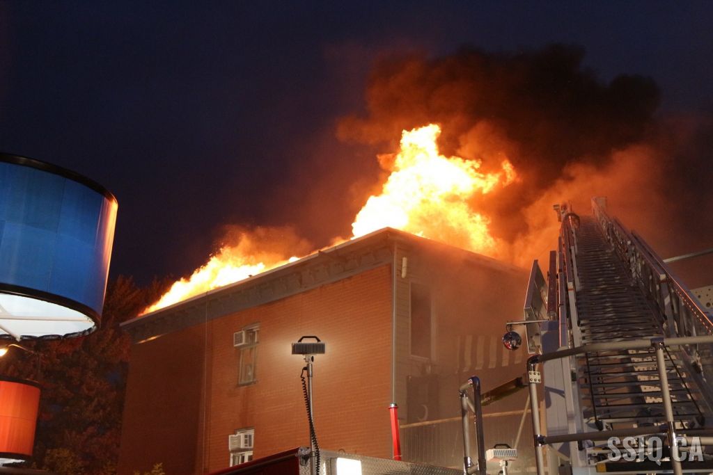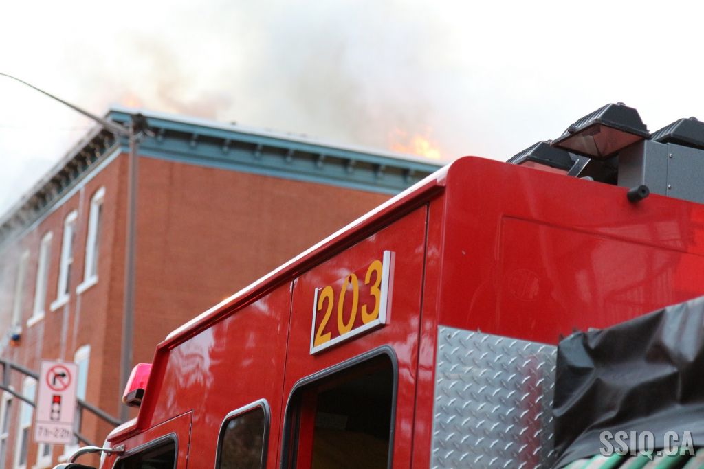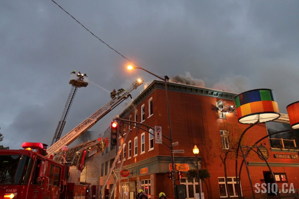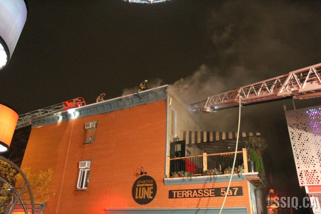 Plusieurs appels entrent au 9-1-1 pour signaler des flammes et de la fumée apparentes au niveau de la toiture. Le 201 partant de la caserne 1 non loin de là, arrive très rapidement et confirme une fumée apparente et ordonne l'intervention nécessaire. Les pompiers procèdent à l'évacuation.