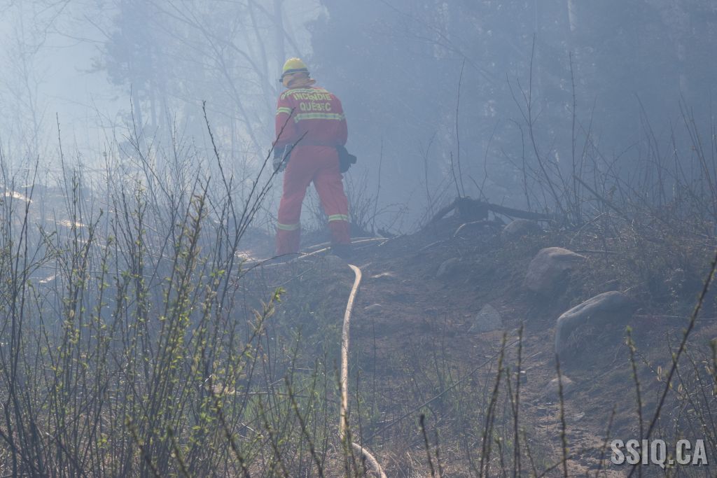 Vers 15h10, un appel entre au 911 pour signaler un feu dans la cours du 1091 rue de l'Esplanade, dans le secteur Val-Bélair. Les détails font mention d'un incendie dans la cours arrière qui se propage rapidement à la forêt. Une fois en route, le 212 constate déjà un important panache de fumée visible à distance. L'incendie progressant rapidement et menaçant plusieurs bâtiments, les alarmes se succédèrent précipitamment. La SOPFEU à également mit la main à la pâte à la demande du service incendie. Grâce à l'intervention de tout le monde, le pire fut évité, aucun dommage majeur n'a été rapporté. À 22h23, sous les conseils de la SOPFEU, les pompiers ont quitté les lieux pour revenir le lendemain matin afin de s'assurer que tous les derniers foyers d'incendie avaient bien été éteint.