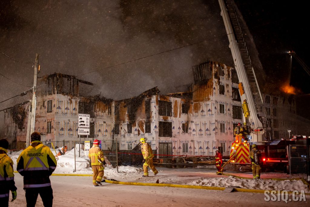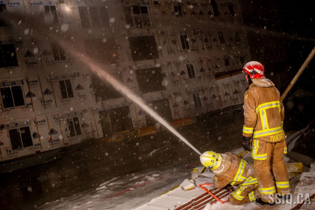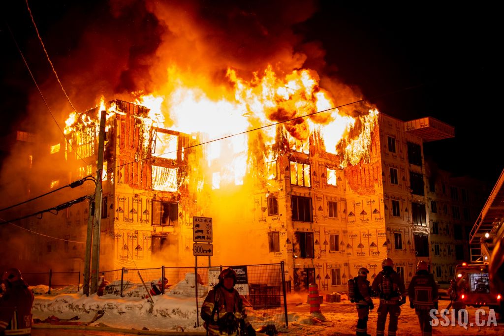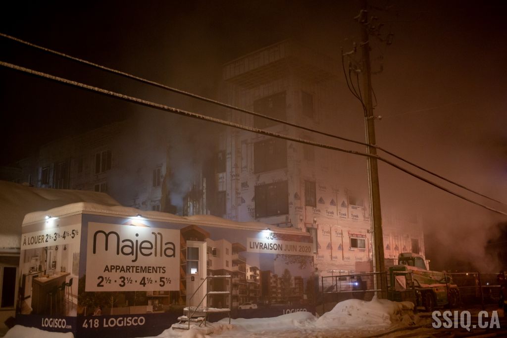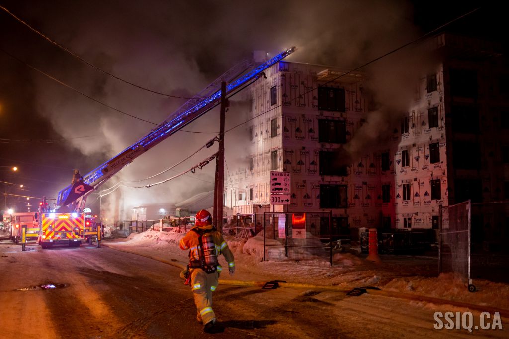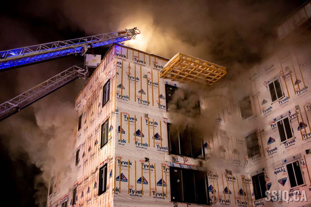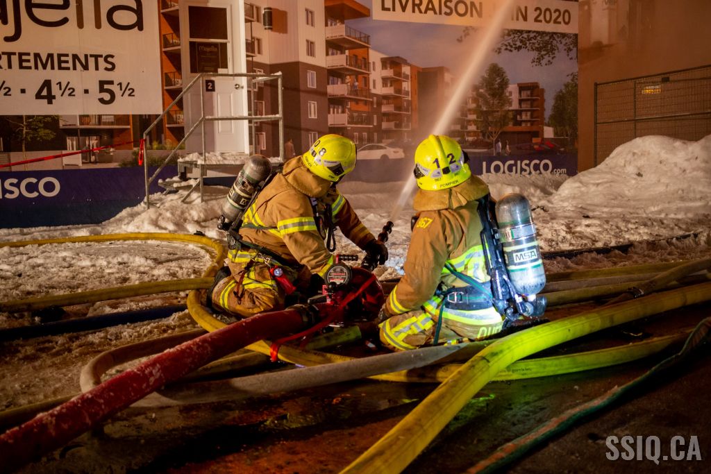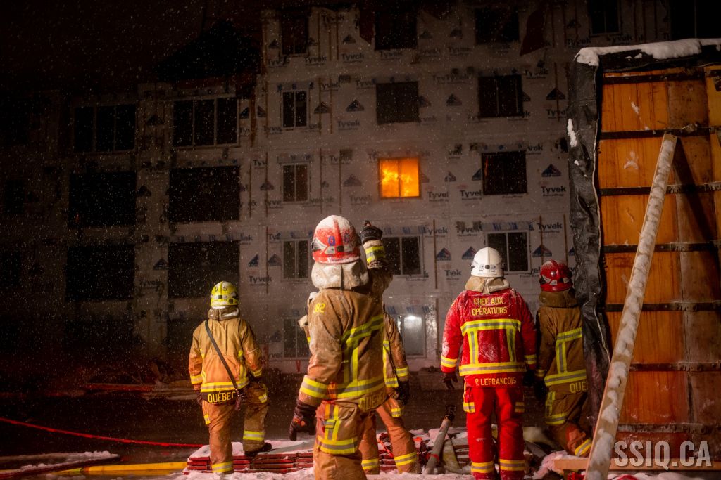 Ce soir, les pompiers ont combattu un incendie d'une extrême violence, dans un immeuble en construction situé au 1420 boulevard Pie-XI Nord, dans l'arrondissement La-Haute-Saint-Charles.