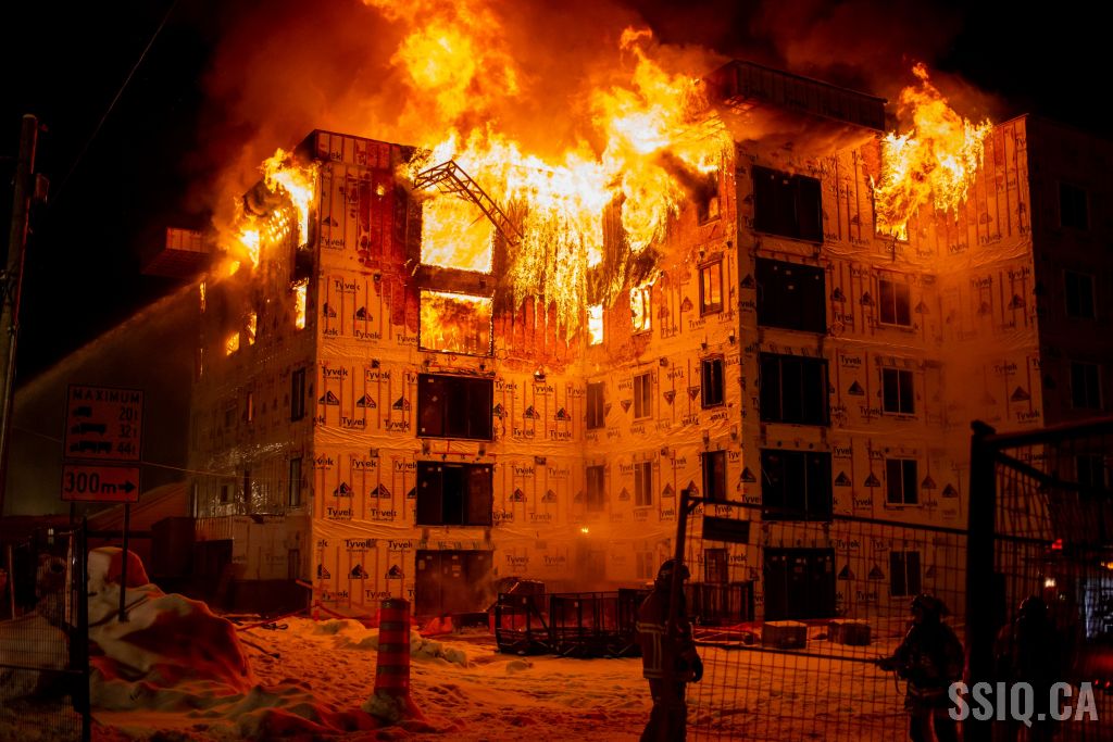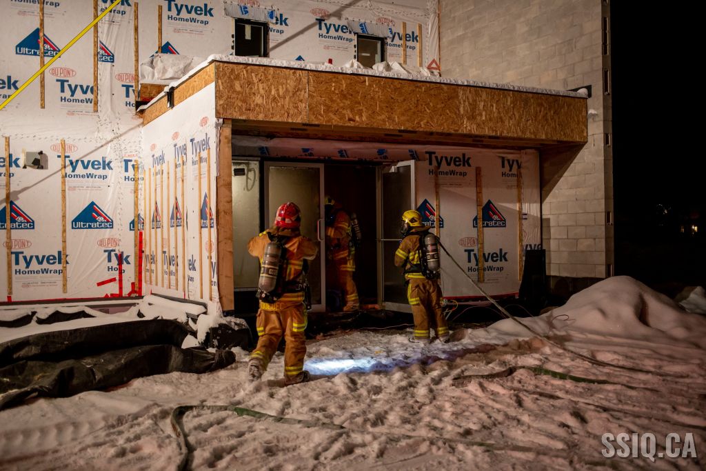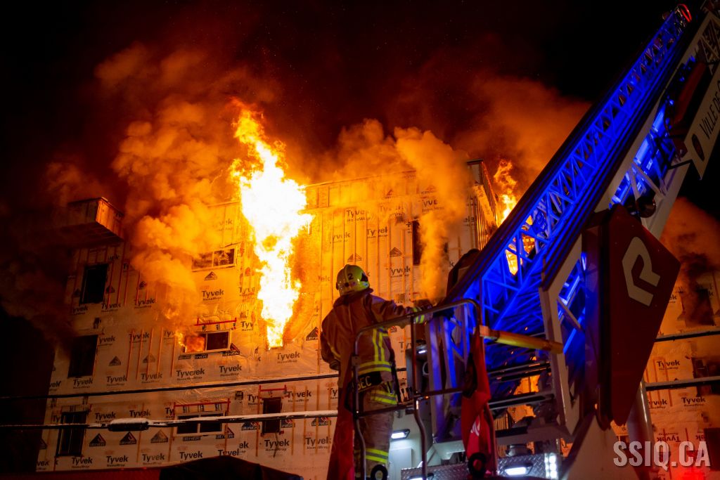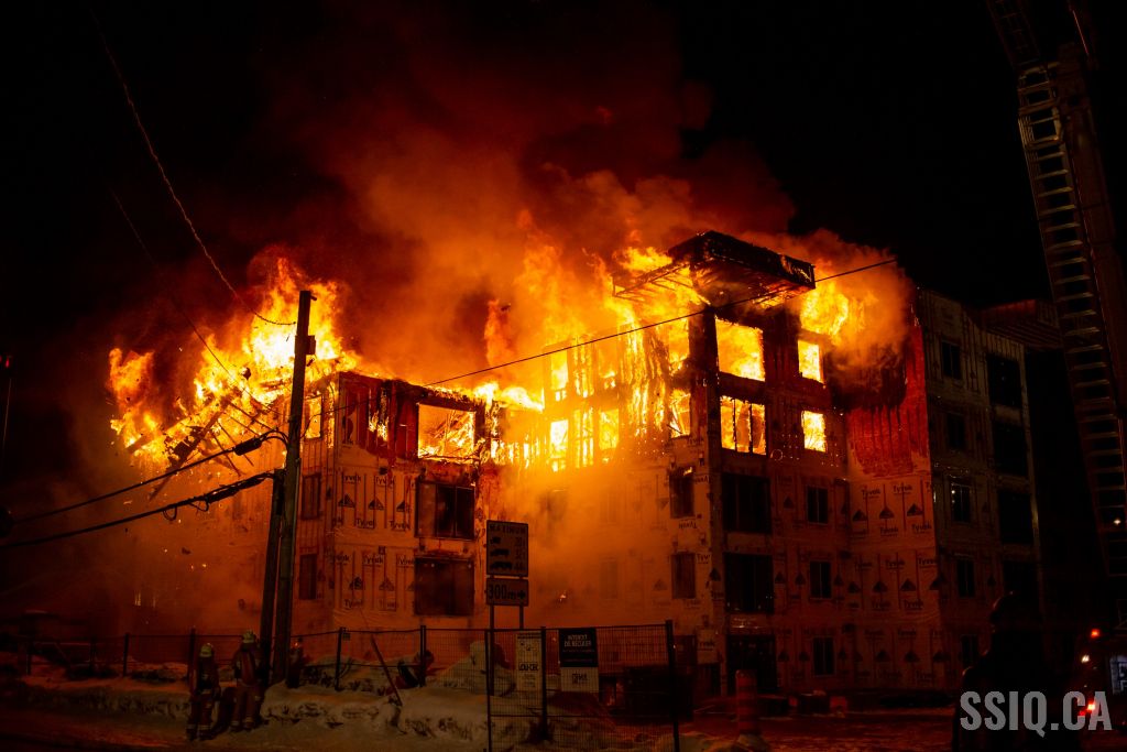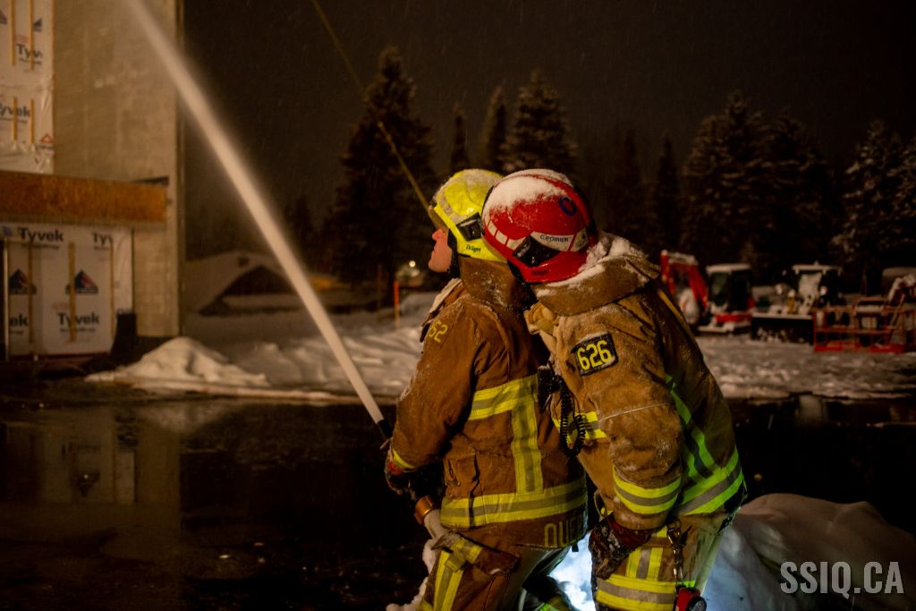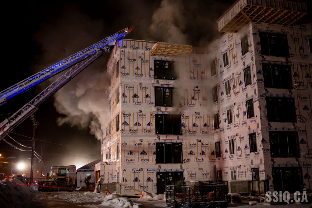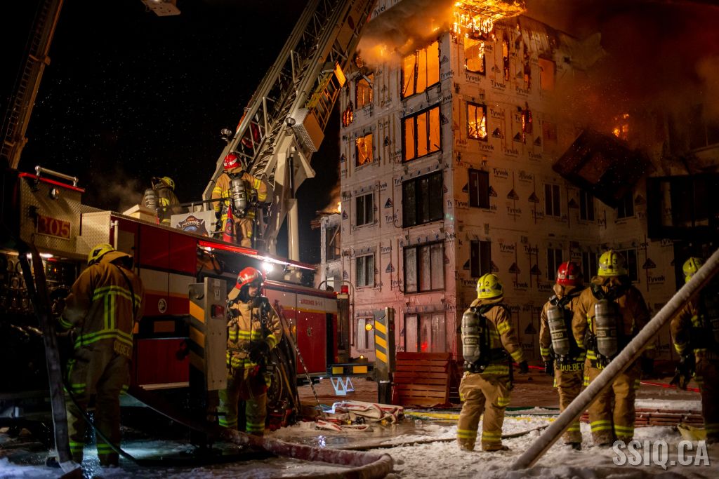 Ce soir, les pompiers ont combattu un incendie d'une extrême violence, dans un immeuble en construction situé au 1420 boulevard Pie-XI Nord, dans l'arrondissement La-Haute-Saint-Charles.