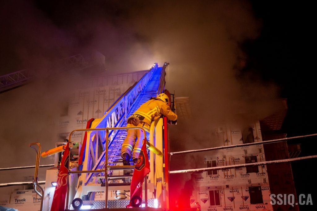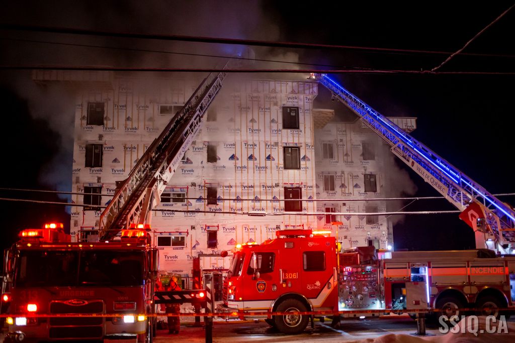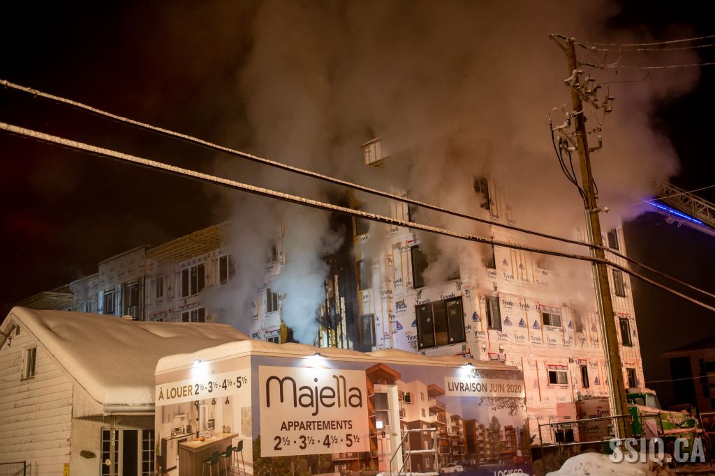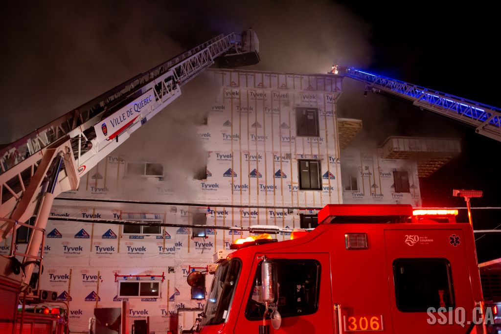 L'appel est initialement placé à la centrale 911 par une résidente voisine de l'immeuble. Les détails font mention de feu visible dans un immeuble en construction de 70 logements. En très peu de temps, énormément d'appels sont logés à la centrale 911 pour signaler l'incendie.