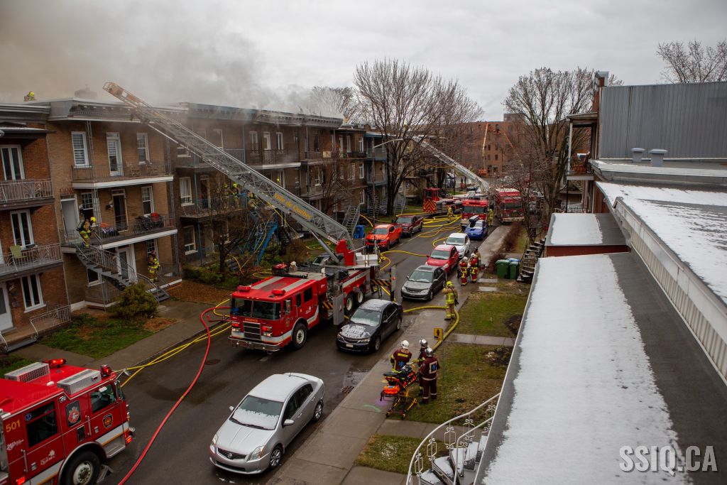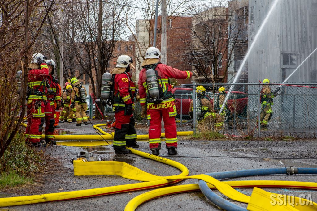 Alors que la propagation aux immeubles voisins est imminente, l'intervention monte en 3e, 4e et finalement en 5e alarme, en moins de 30 minutes, afin d'acheminer les effectifs nécessaires pour combattre ce brasier. Un délestage à distance est aussi demandé à Hydro-Québec pour couper rapidement l'alimentation électrique.