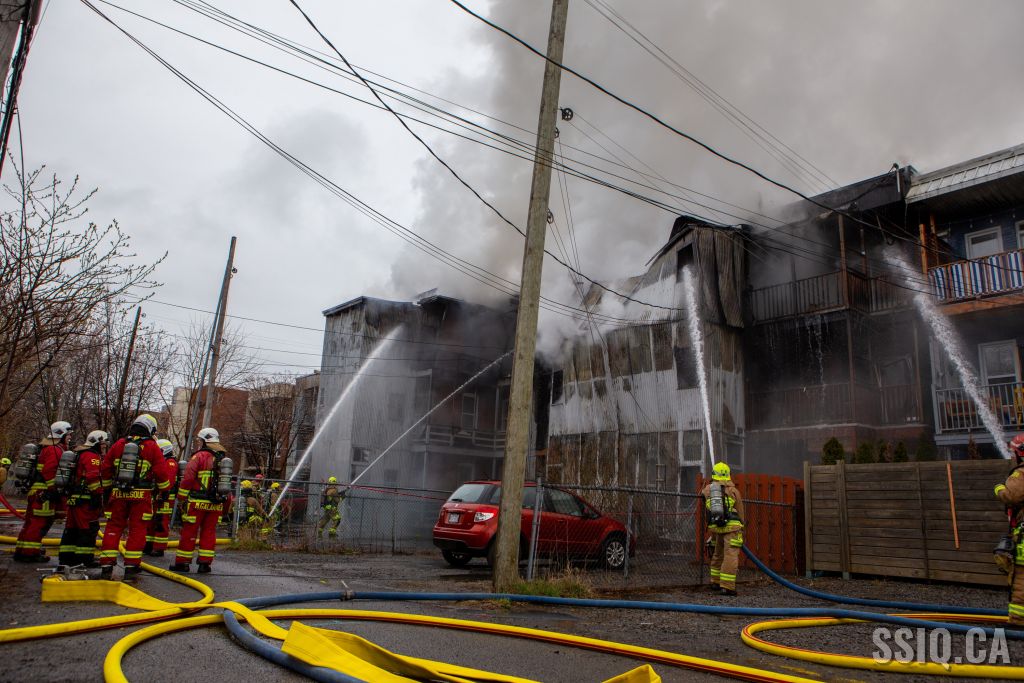 Réveil brutal au coeur du Vieux-Limoilou, tôt ce matin, alors qu'un incendie majeur nécessitant 5 alarmes a fortement endommagé 5 immeubles de type triplex de la 10e rue.