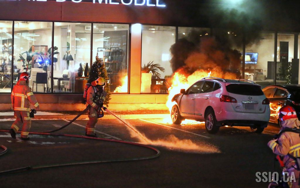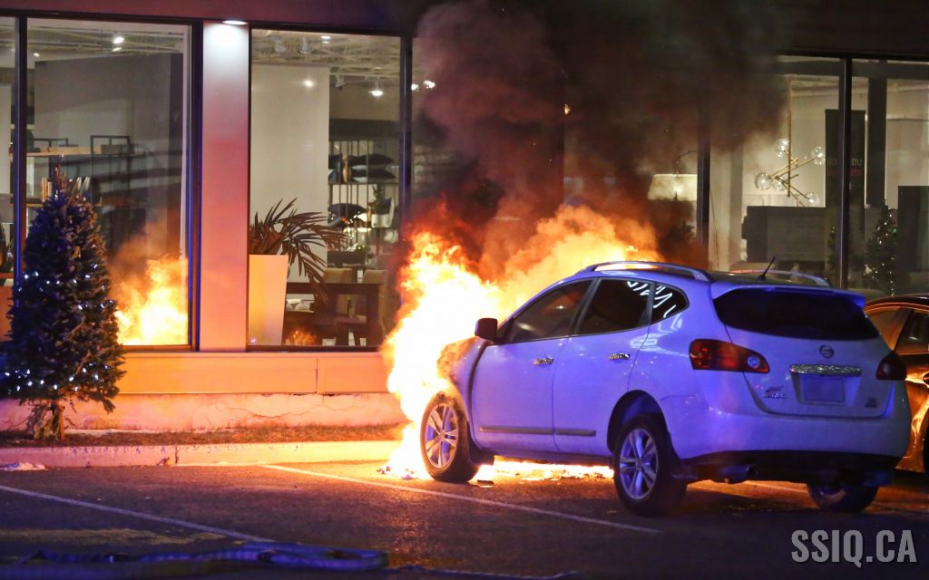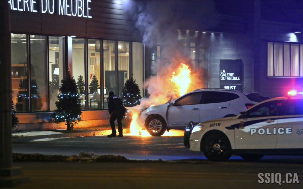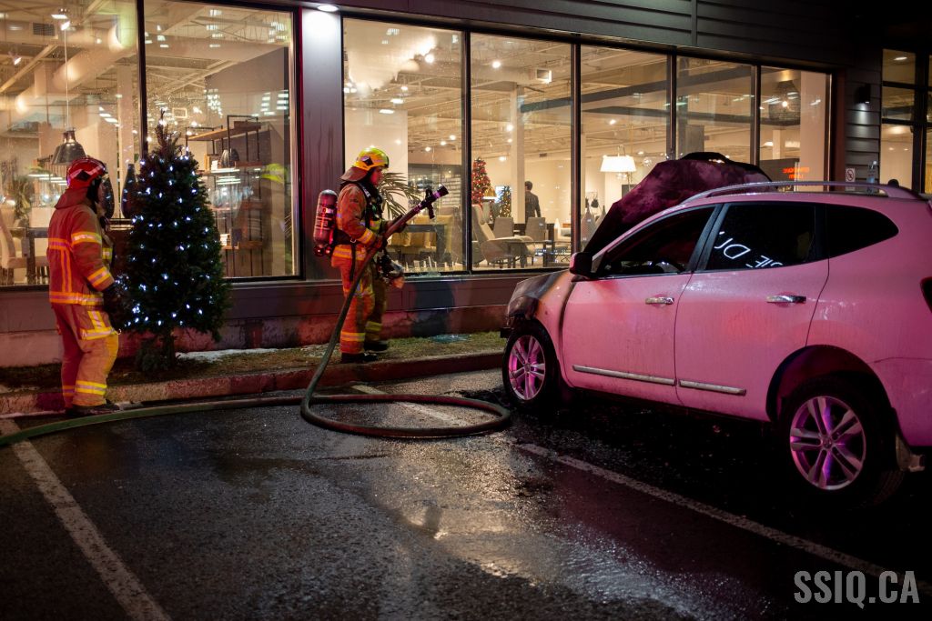 En milieu de soirée, un incendie de véhicule a causé plus de peur que de mal, dans le stationnement d'un commerce du boulevard Charest ouest.
