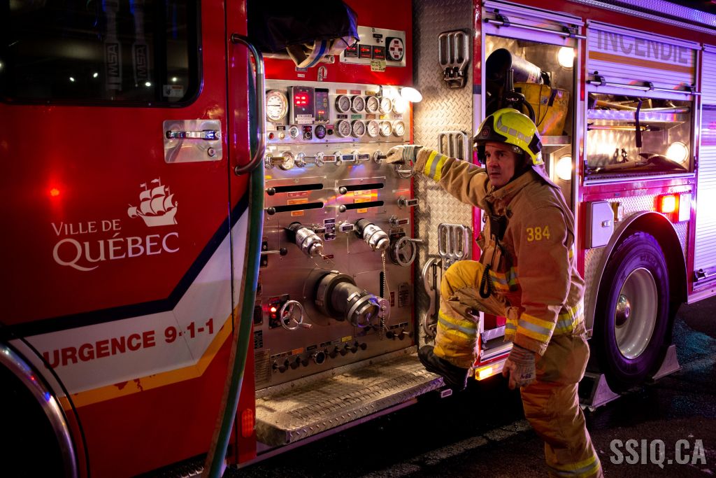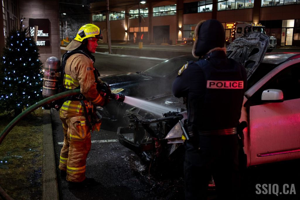 Initialement réparti pour un feu de véhicule pour l'équipe du 201, l'intervention est rapidement balancée en 1ere alarme étant donné les multiples appels de citoyens à la centrale 911. Les détails font mention de véhicule en flammes, de petites explosion, et d'un commerce qui est situé tout près.
