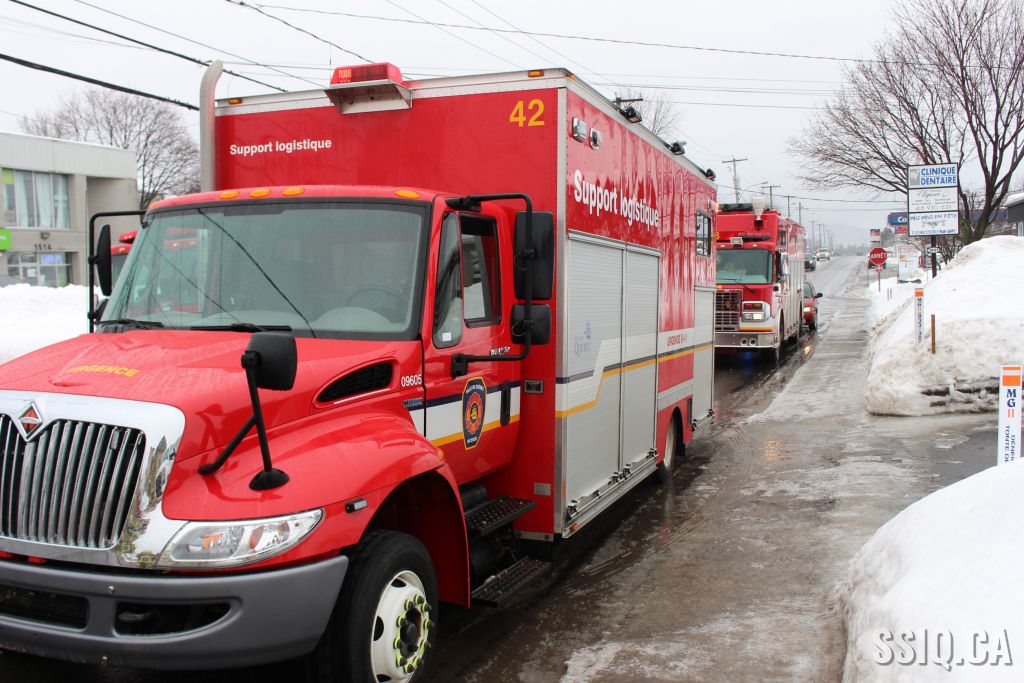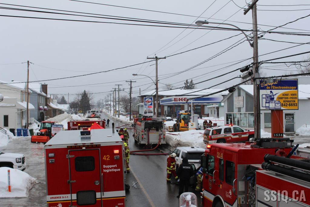 Suite à des travaux de déneigement de la cour arrière du commerce, un camion de déneigement a accroché une conduite de gaz qui alimente le bâtiment. Un important déploiement du service incendie a été nécessaire le temps que la compagnie de gaz colmate la fuite. Les bâtiments voisins ont été évacués le temps de l'intervention.