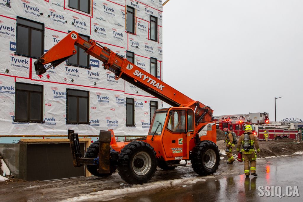 Rien n'est apparent pour les premières équipes à arriver sur les lieux. Les recherches et les traces au sol permettent cependant de constater que la fuite provient d'un appareil d'élévation de type SkyTrack.