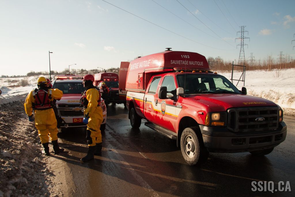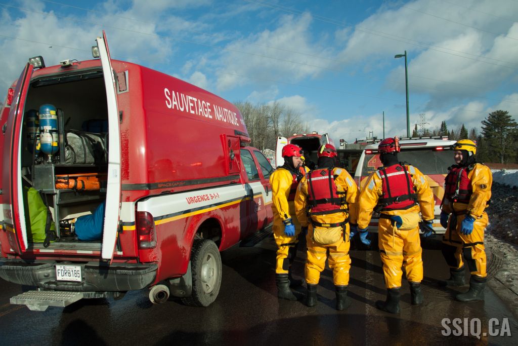 28 janvier 2018 (Arrondissement Beauport). Les pompiers des équipes nautiques du SPCIQ sont intervenus, à 9h28, pour un grave accident de motoneige sur la rivière Montmorency, dans le secteur du boulevard Raymond et de la rue Bellavance.