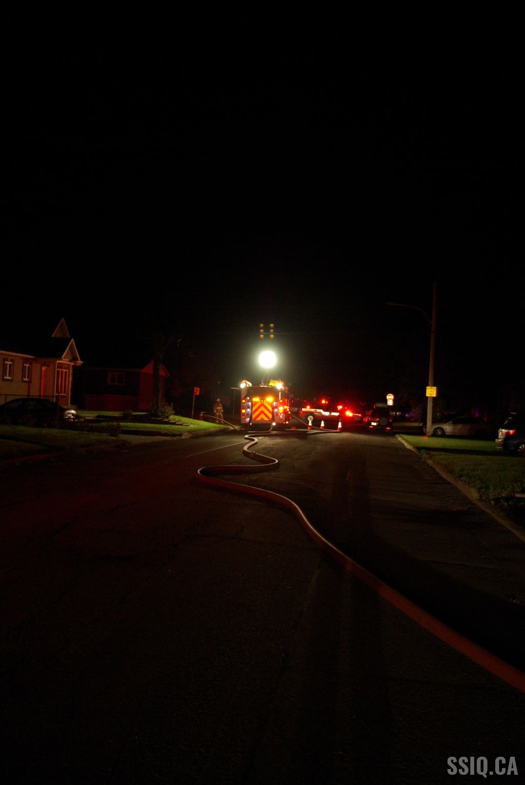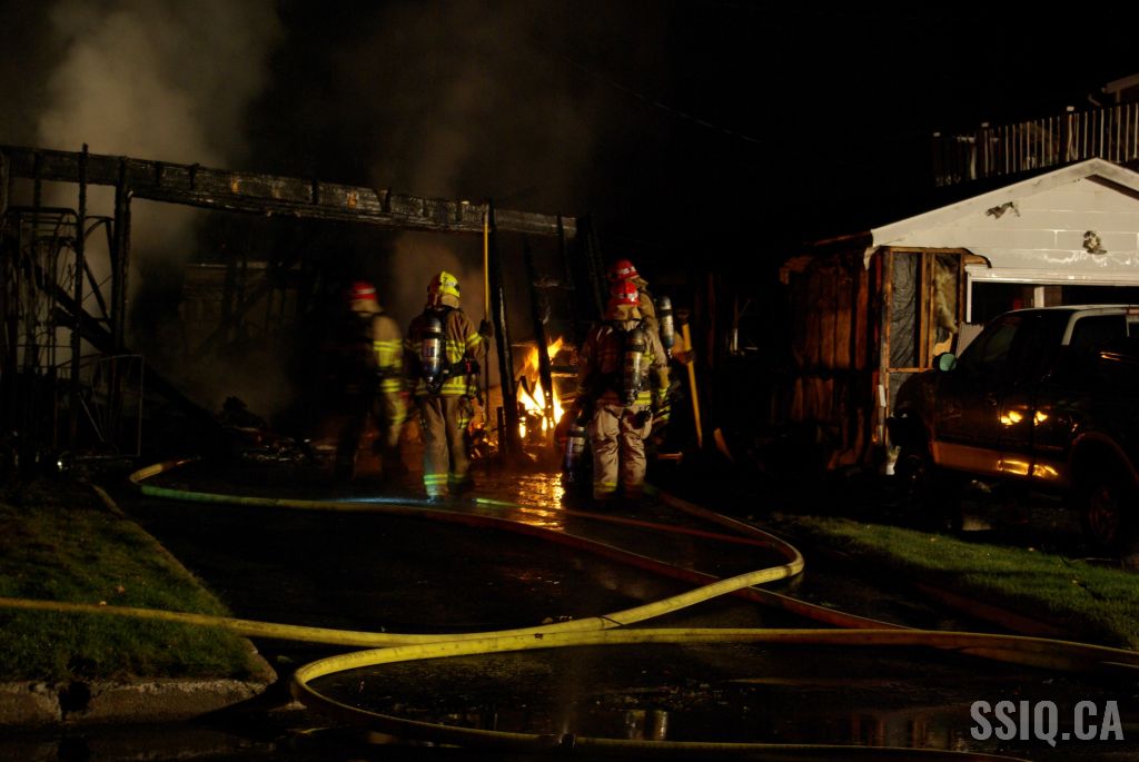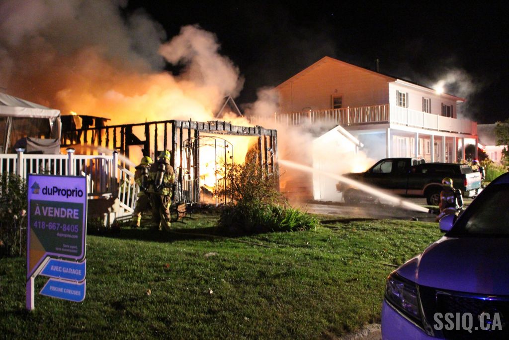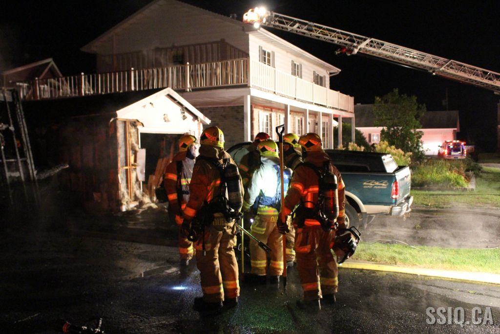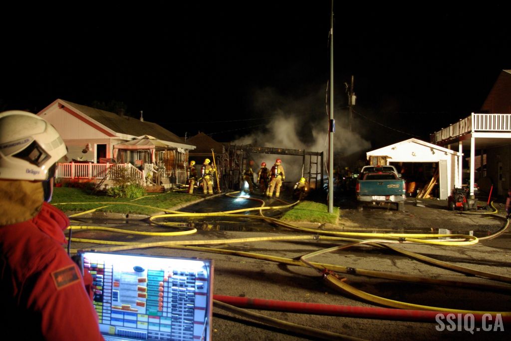 Le premier appelant à la centrale 911 mentionne que le feu est pris dans le garage détaché de son voisin.