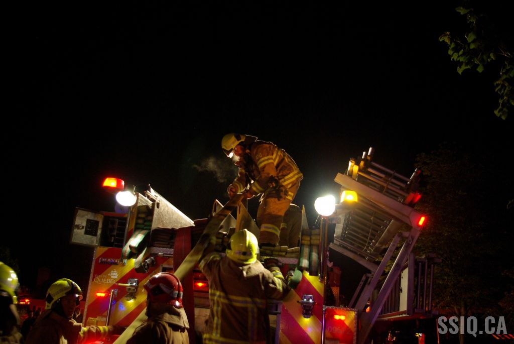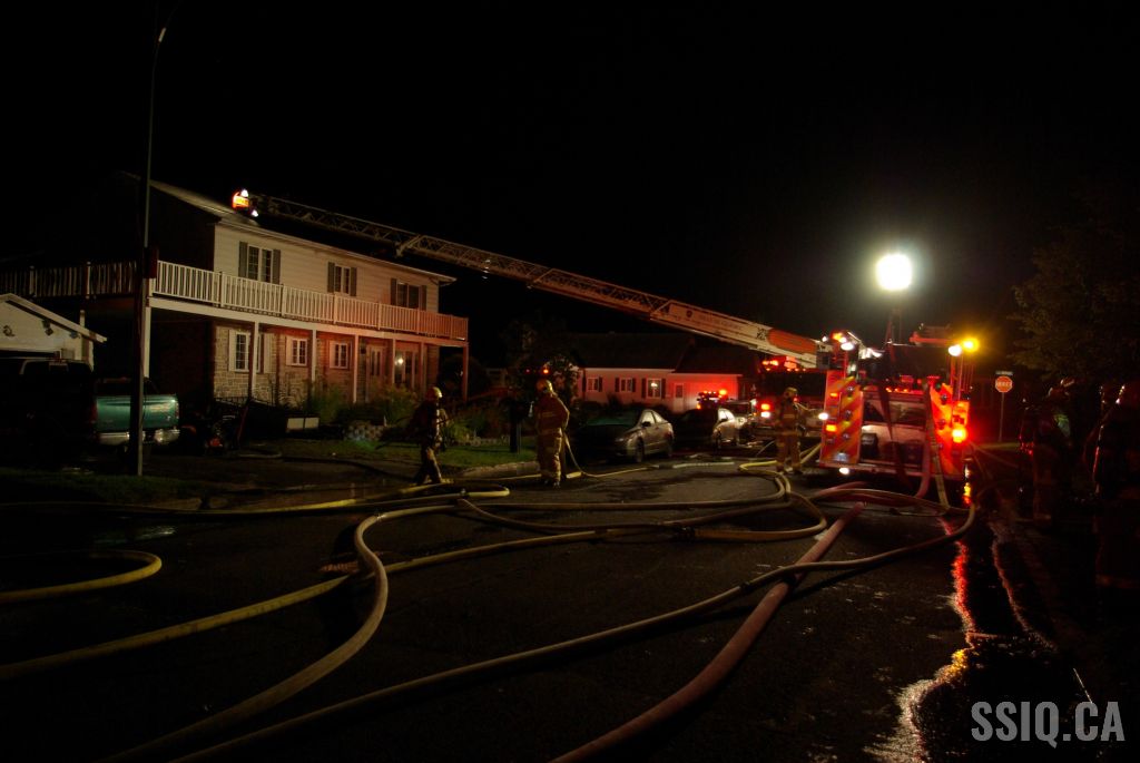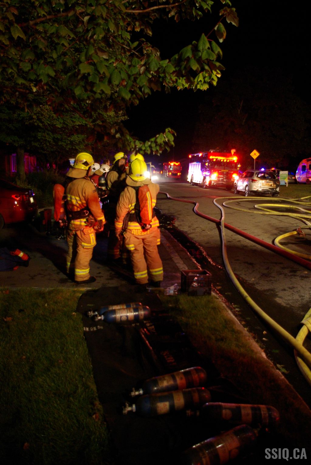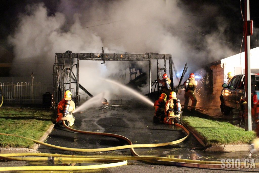 Le premier appelant à la centrale 911 mentionne que le feu est pris dans le garage détaché de son voisin.